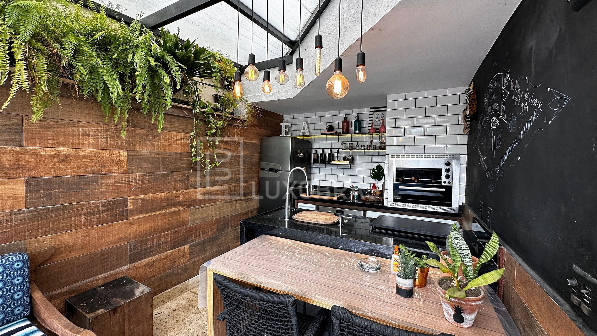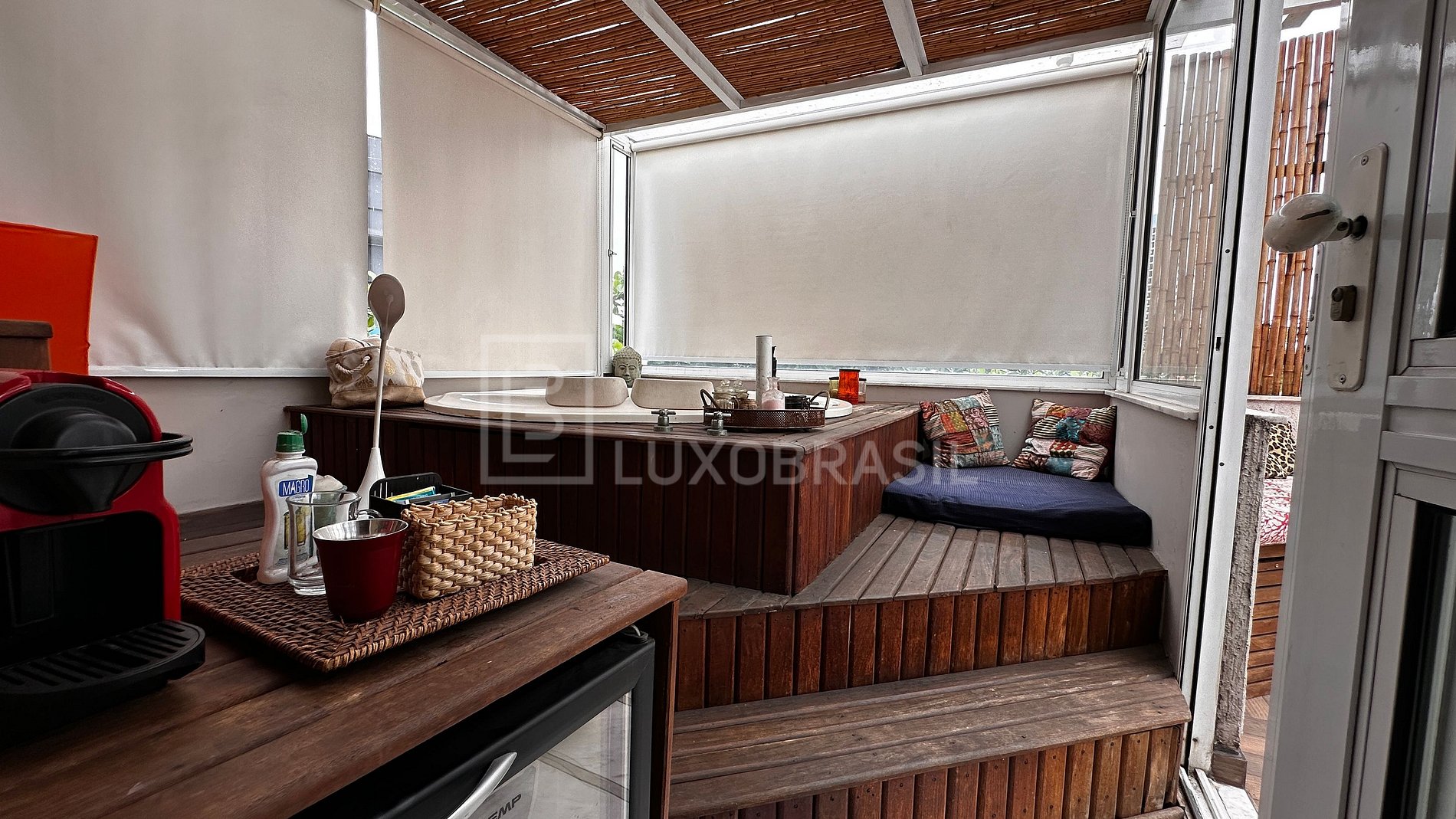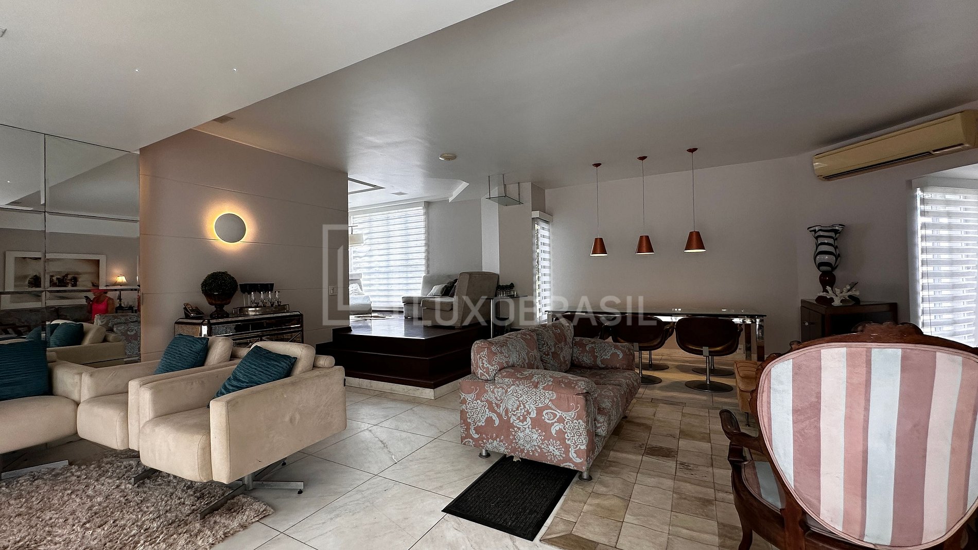 LUXOBRASIL offers for rent a stunning house located in the Jardim Nova Barra Condominium. Spread over five floors, the property features four suites, plus a versatile TV room that can easily be converted into an additional suite to suit your needs. The gourmet area is seamlessly connected to the pool, creating the perfect setting for family gatherings or entertaining friends.