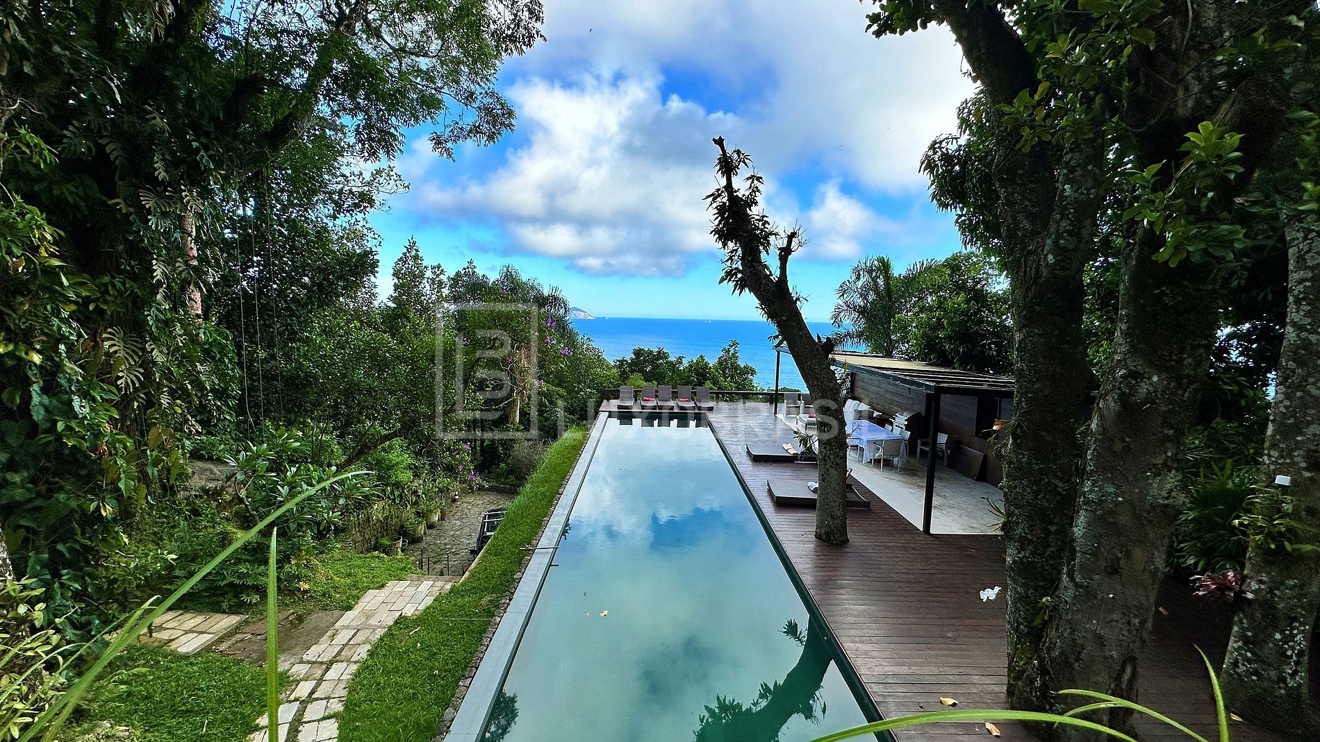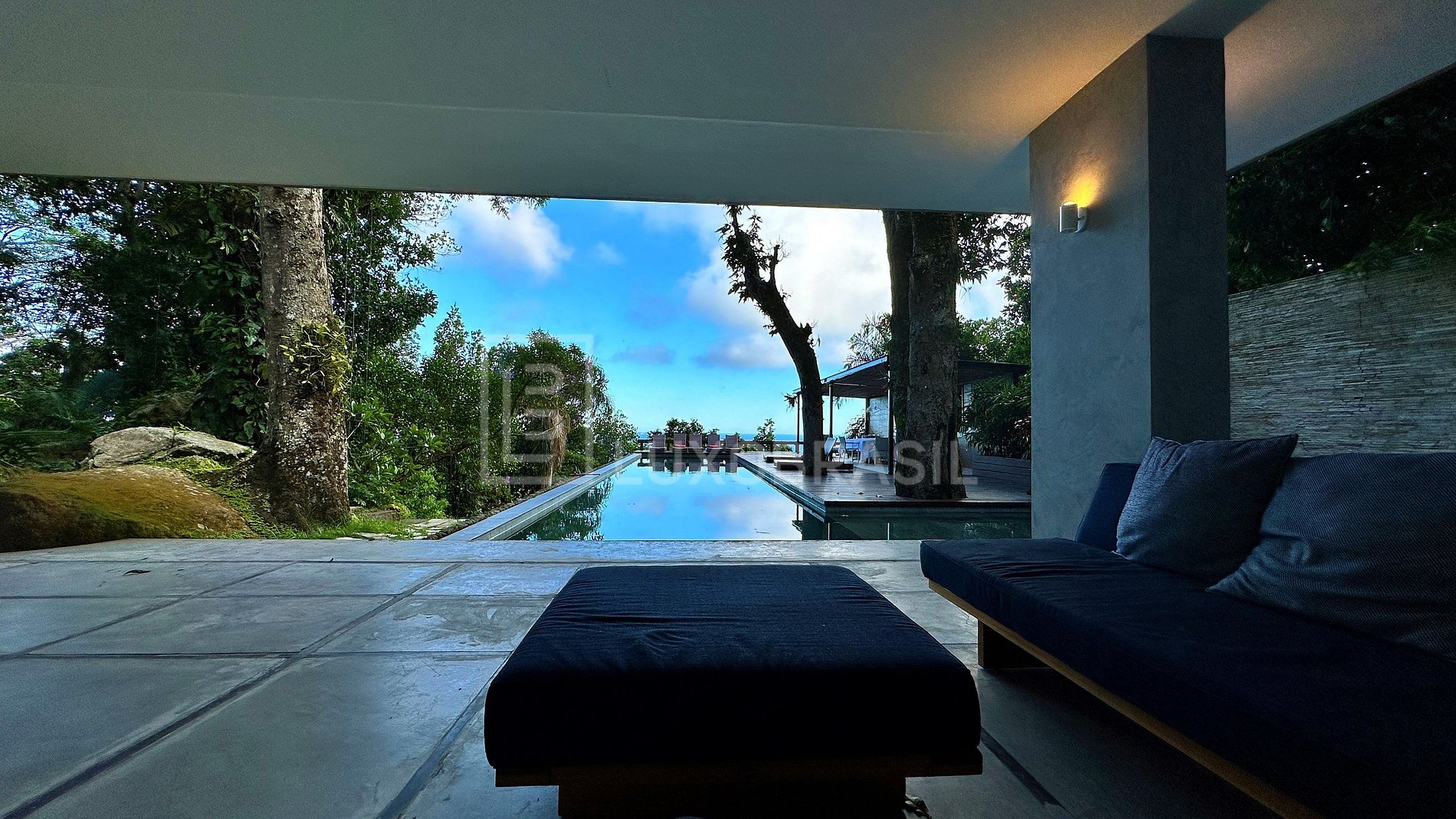 LUXO BRASIL offers for rent this exclusive villa set on a 3,348 m² plot, combining tranquility, privacy, and a breathtaking ocean view, surrounded by lush tropical vegetation.