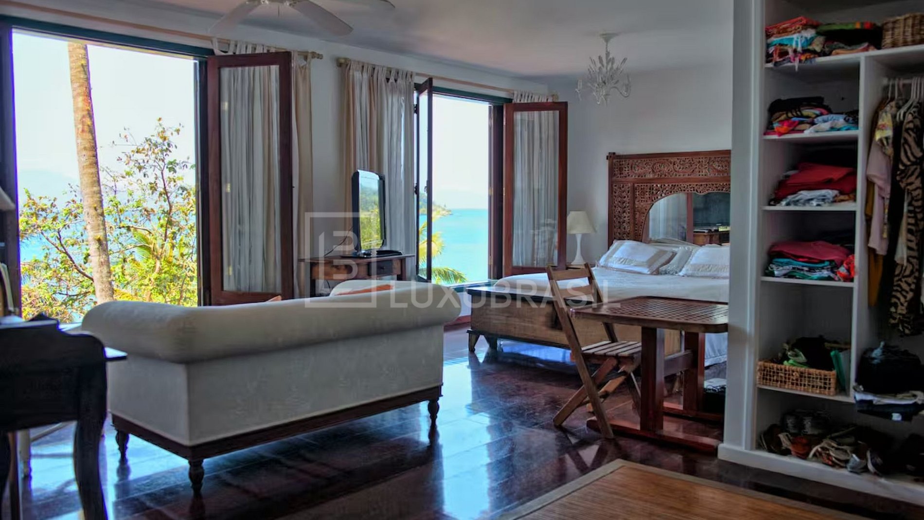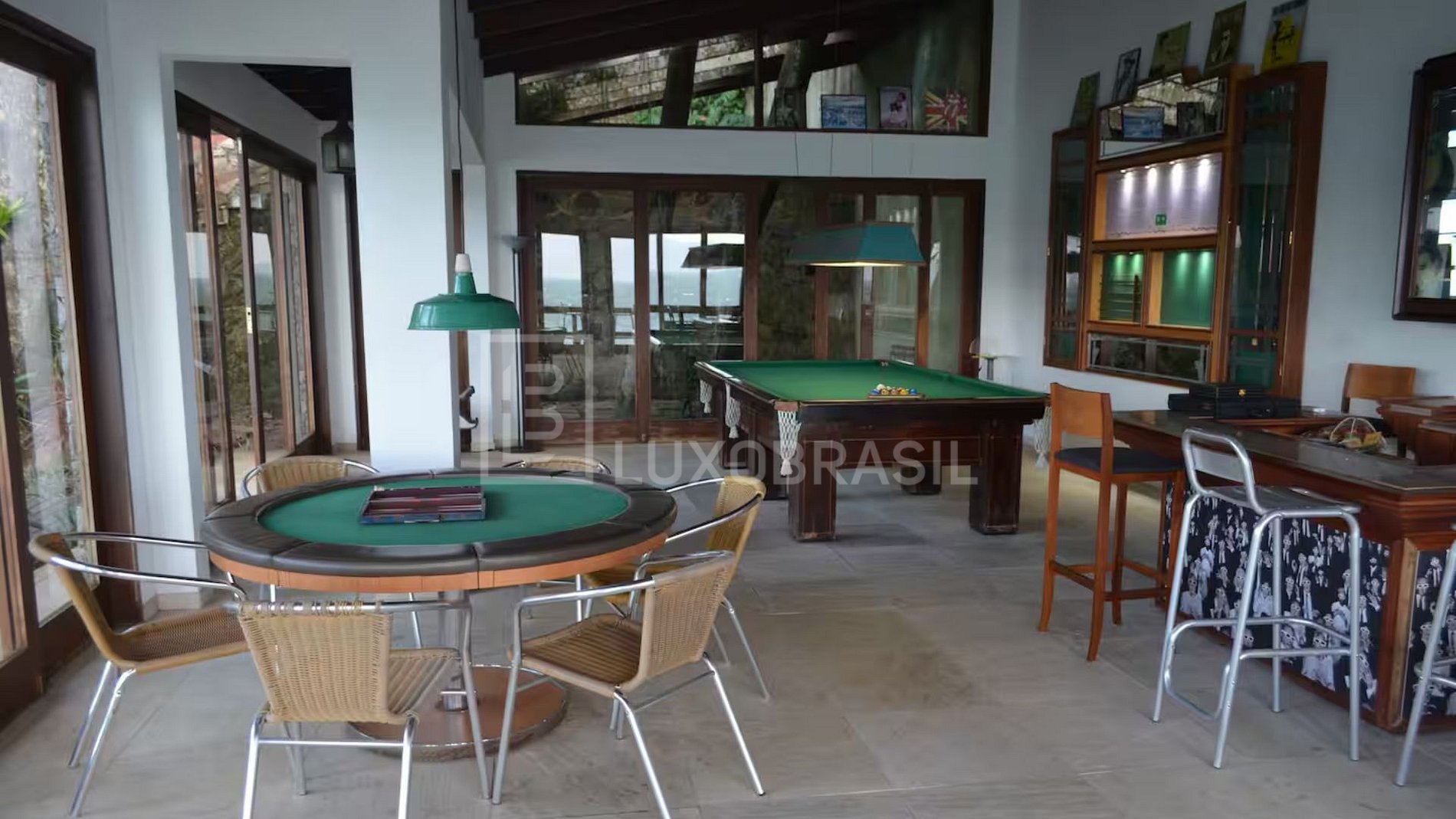 Attached to the main house, it includes pool table, card table and sound system, with a 180° panoramic ocean view. A versatile leisure space designed for relaxation and entertainment in Angra.