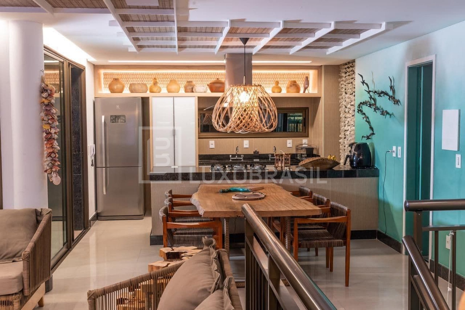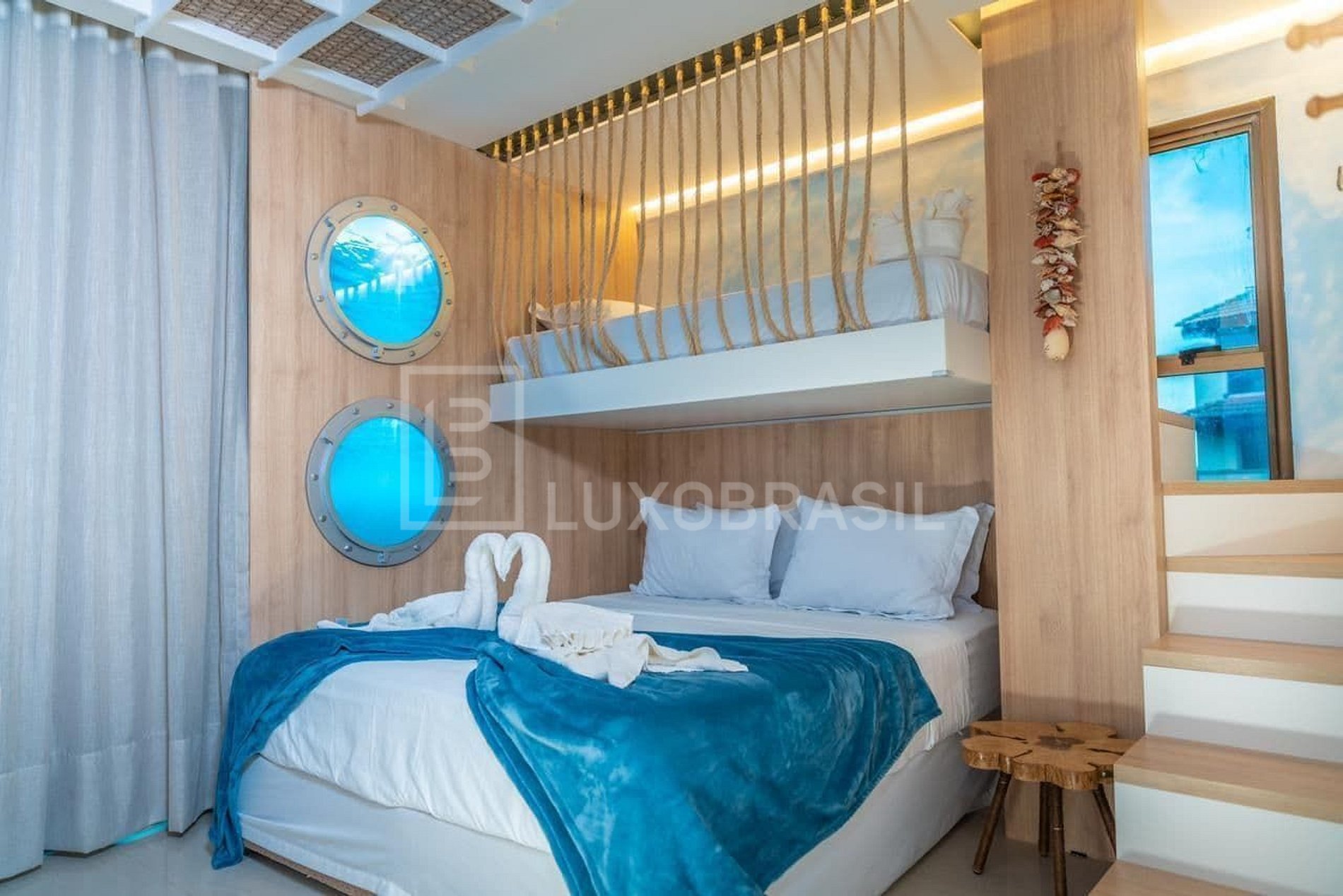 Bangalô duplex com todo conforto e luxo que se encontra em um imovel de praia.
