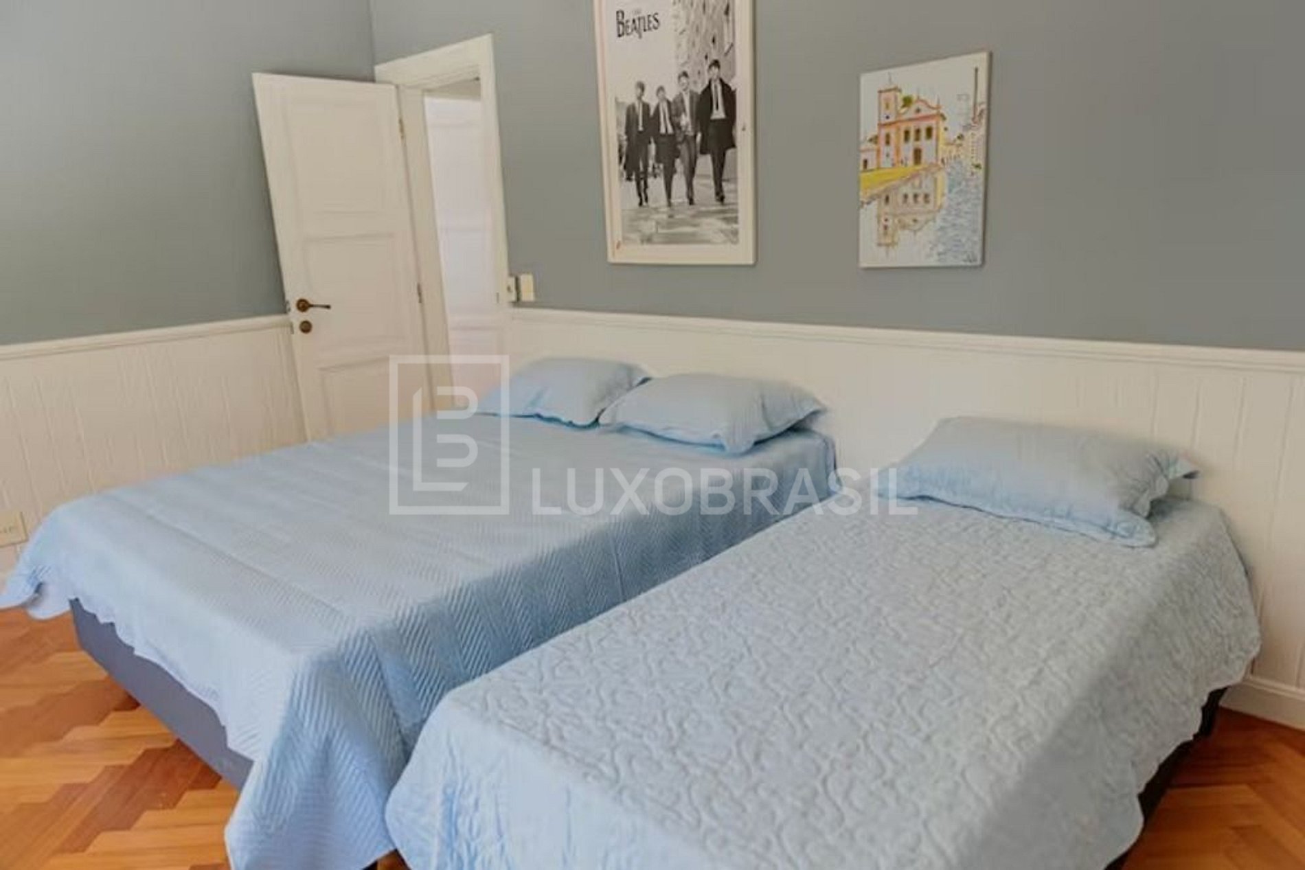 This incredible mansion is located in São Conrado, in a gated community with total security, overlooking the sea and Pedra da Gávea. It has a large outdoor area with a swimming pool, barbecue, sauna, table and chairs, sun lounger with ombrellone, and bathroom. The mansion has 03 floors, and has a living room integrated into a charming veranda, dining room, toilet, TV room, kitchen with island, and 04 bedrooms, master suite with dressing room.Covered garage with capacity for 03 cars.