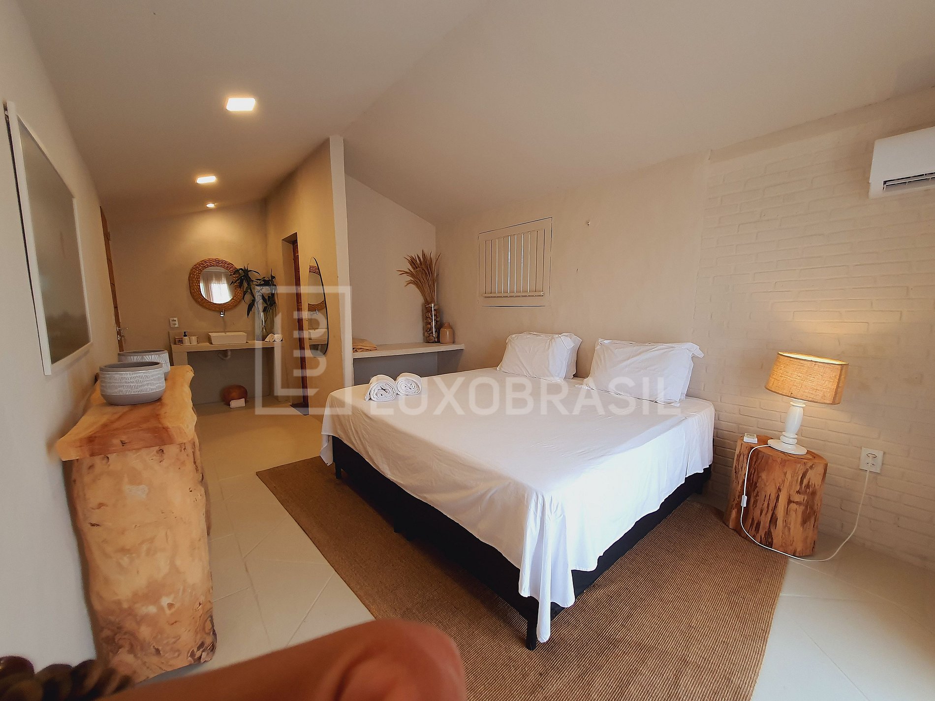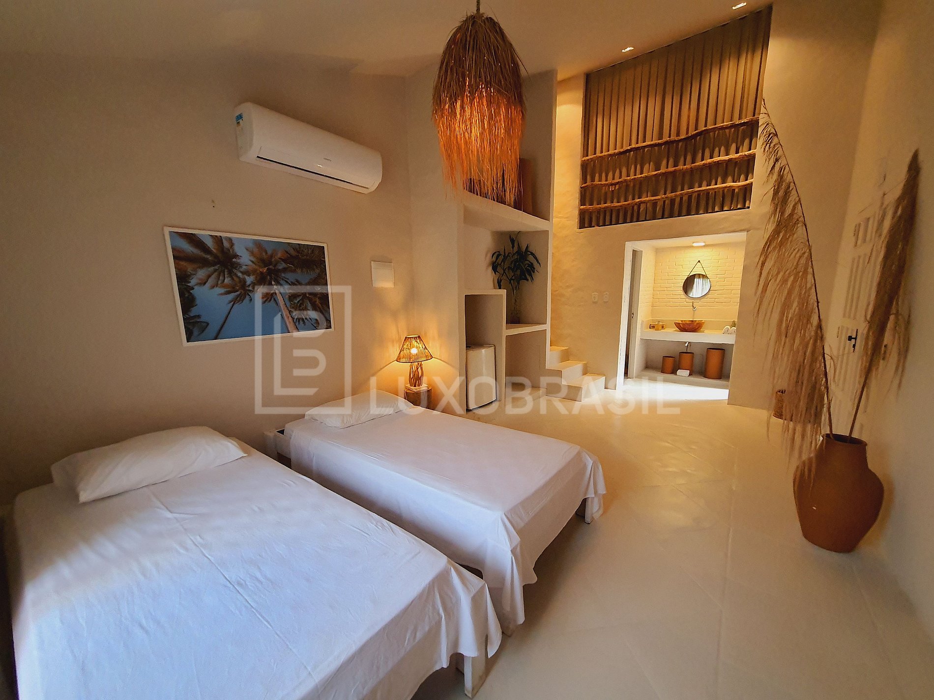 KANAHA BEACH VILLA has 1 Main House and 4 bungalows, accommodating up to 19 people, with a clean, minimalist design without losing the rusticity and native charm of Icaraizinho. All the accommodations offer generous comfort complemented by a breathtaking view of the sea and a private bathroom area that allows for a harmonious interconnection with nature.