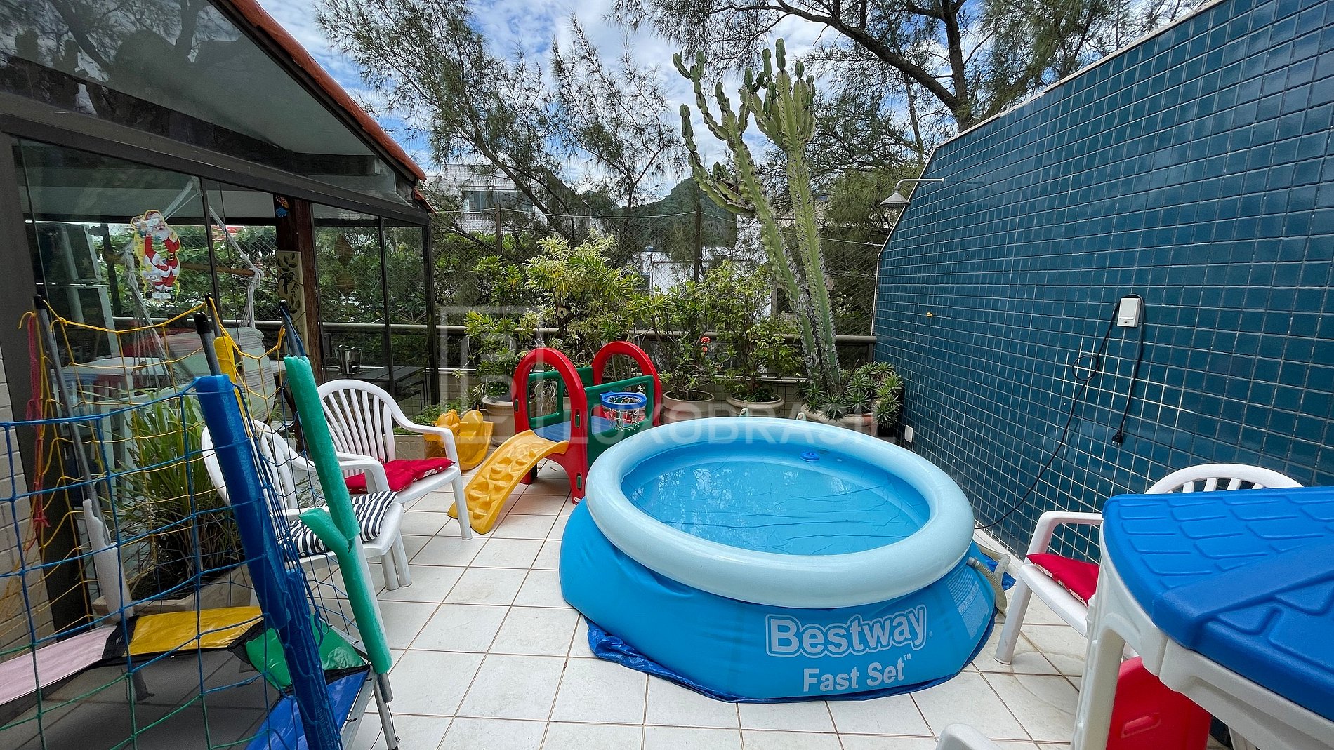 Second floor: living room, full bathroom, office reversible to bedroom, gourmet area, open space, portable pool, view to the sea and Gávea stone.