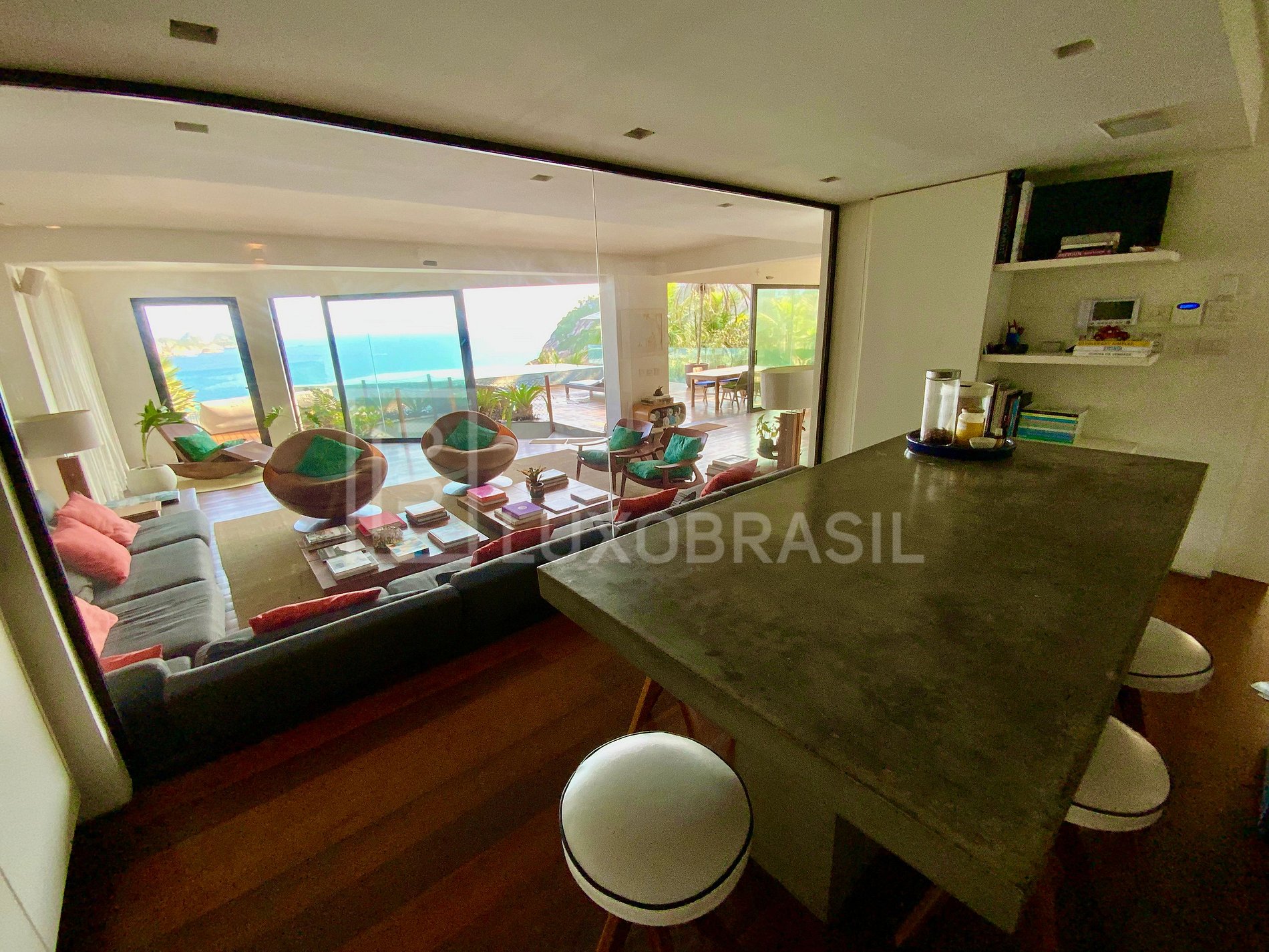 Mansion designed by architect Jean-Luc Boucharenc, with a modern and contemporary design, located in front of Joatinga Beach. With a large outdoor area, deck, infinity pool and spectacular views! Its large windows and balconies provide perfect integration between the house and the exuberant sea views,
