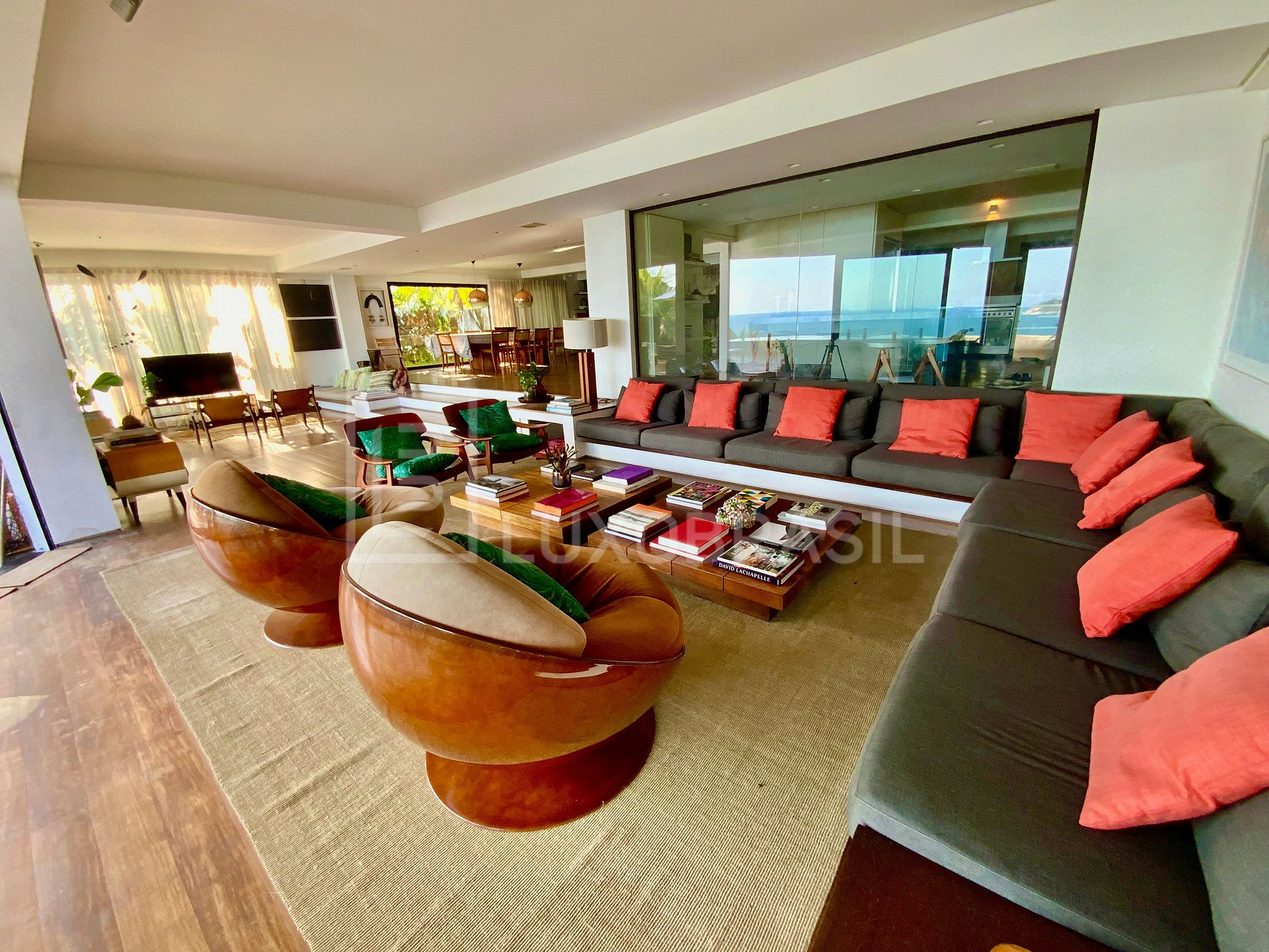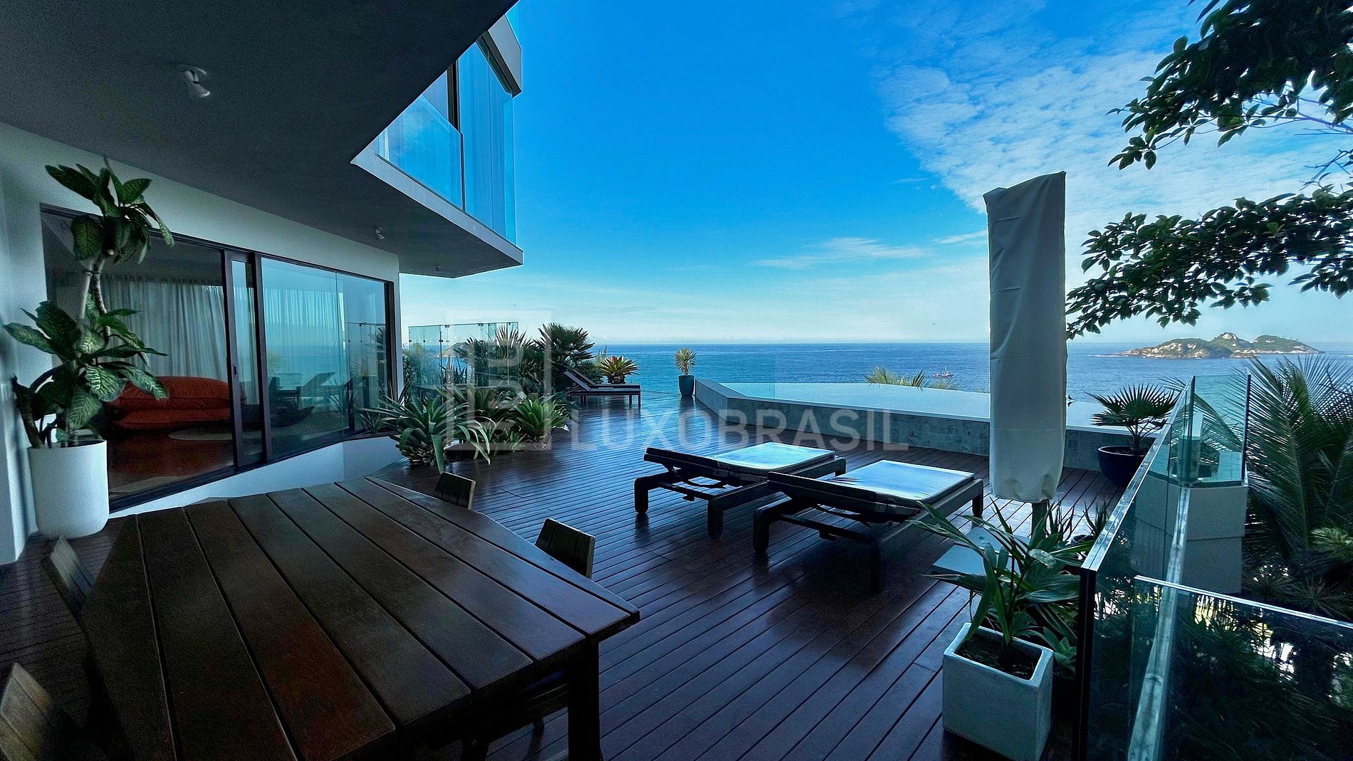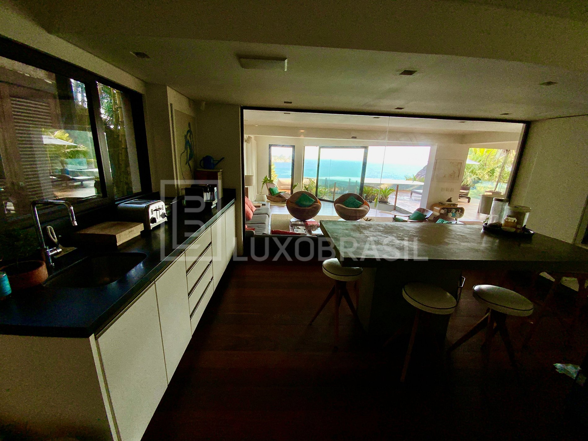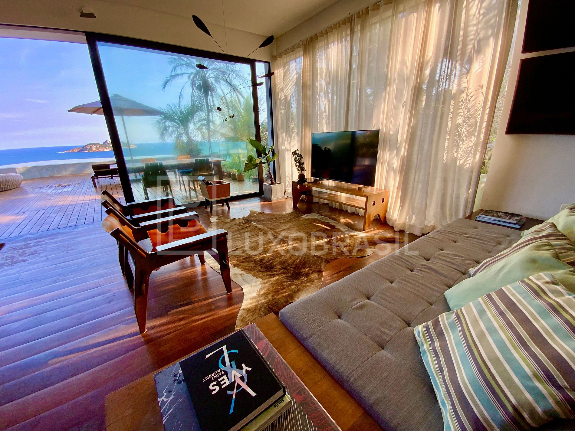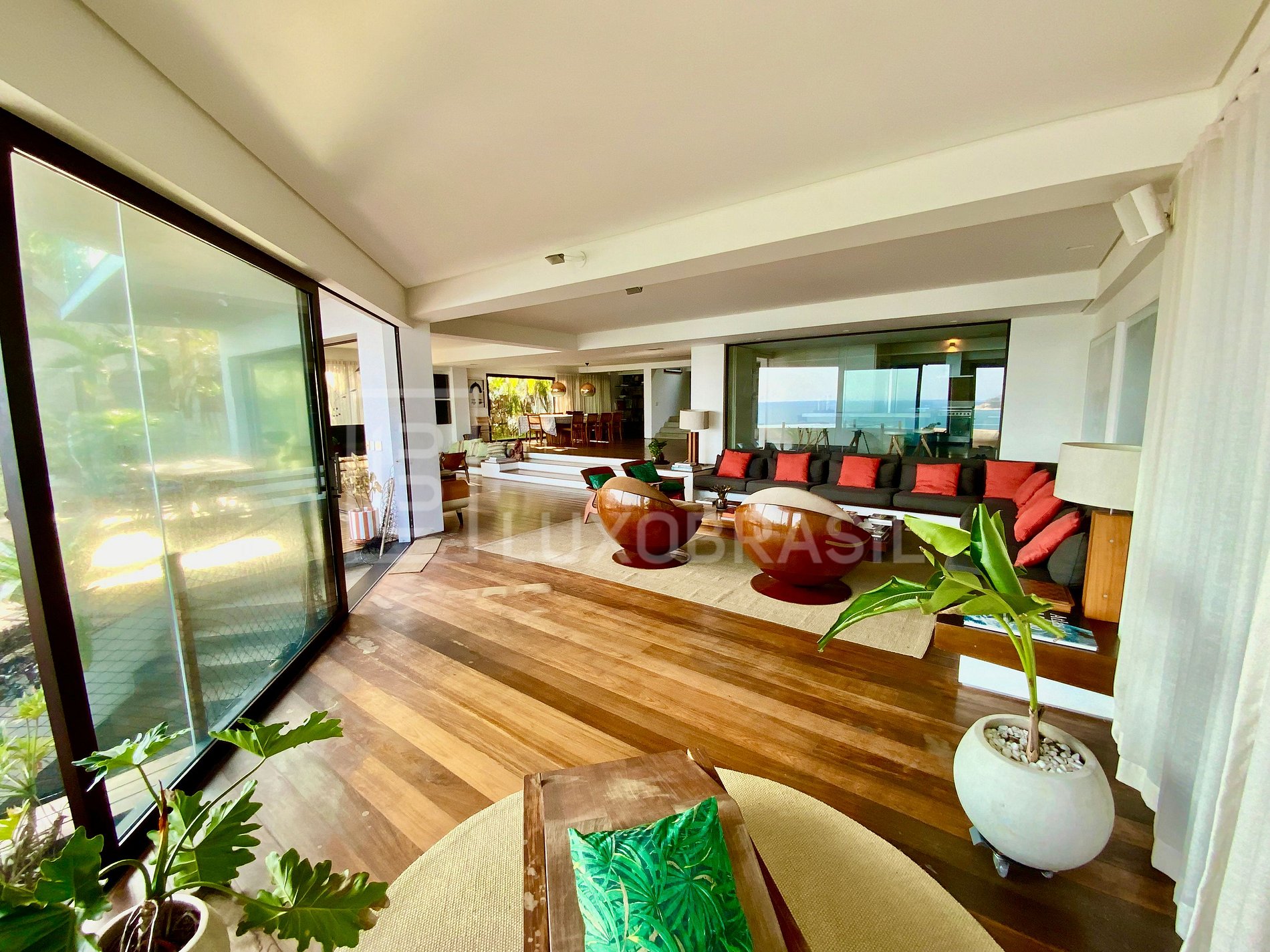 Mansion designed by architect Jean-Luc Boucharenc, with a modern and contemporary design, located in front of Joatinga Beach. With a large outdoor area, deck, infinity pool and spectacular views! Its large windows and balconies provide perfect integration between the house and the exuberant sea views,