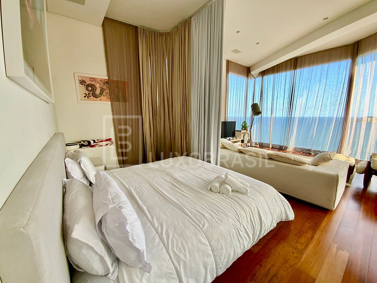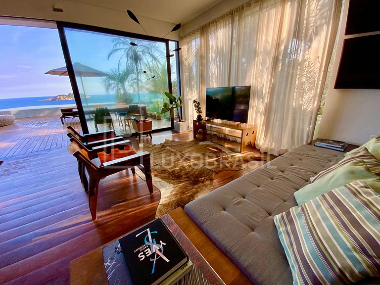 Mansion designed by architect Jean-Luc Boucharenc, with a modern and contemporary design, located in front of Joatinga Beach. With a large outdoor area, deck, infinity pool and spectacular views! Its large windows and balconies provide perfect integration between the house and the exuberant sea views,