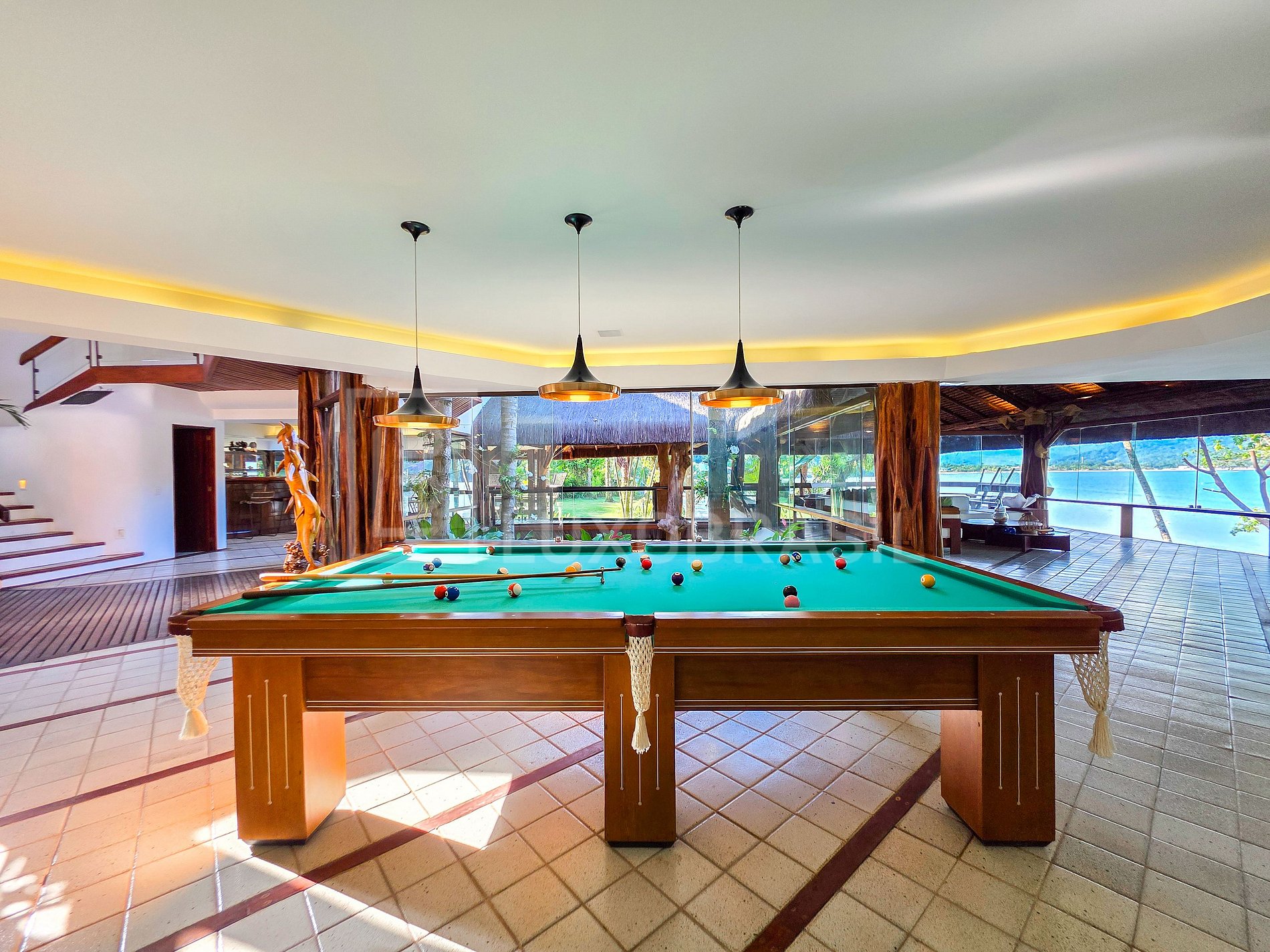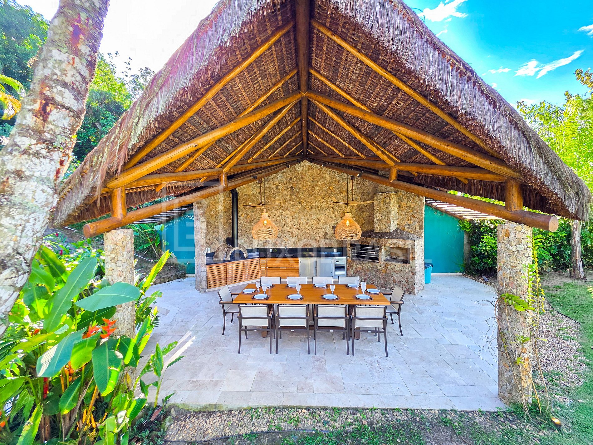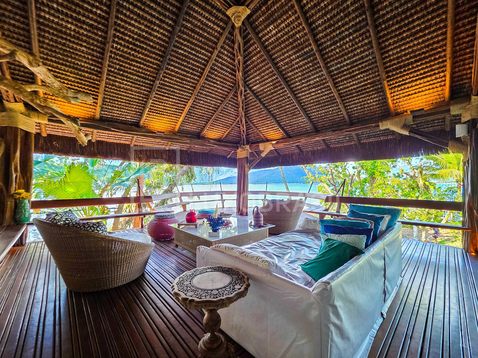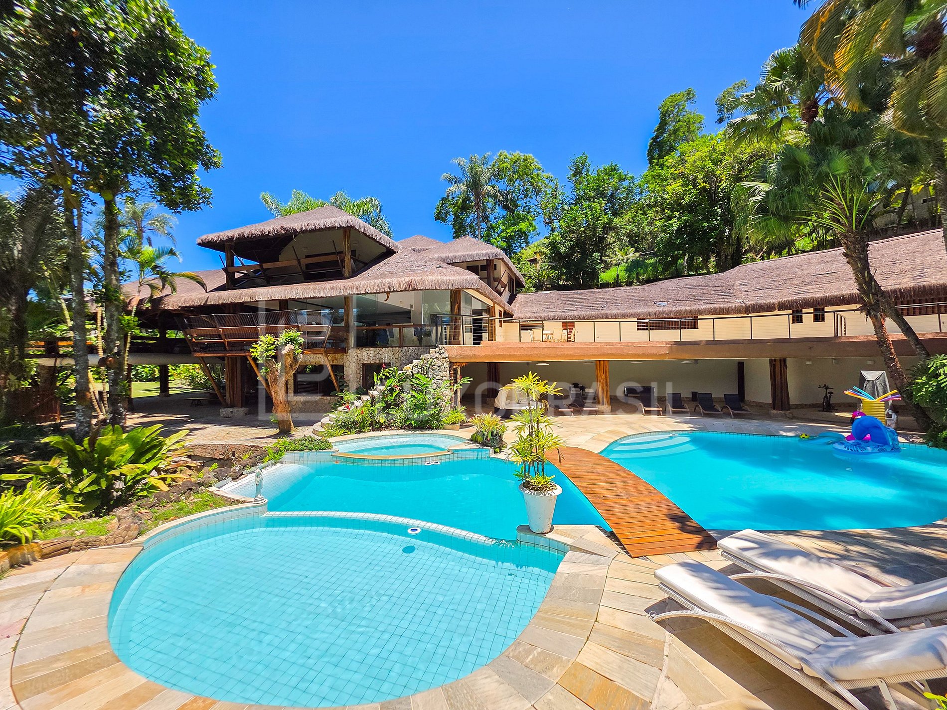 Set on a privileged plot of approximately 1,700 m², the residence features 2 floors and spacious, integrated rooms. The construction combines steel, wood, glass, and a thatched roof, creating a sophisticated, tropical style perfectly harmonized with the surrounding vegetation—ideal for those seeking a unique accommodation experience immersed in nature.