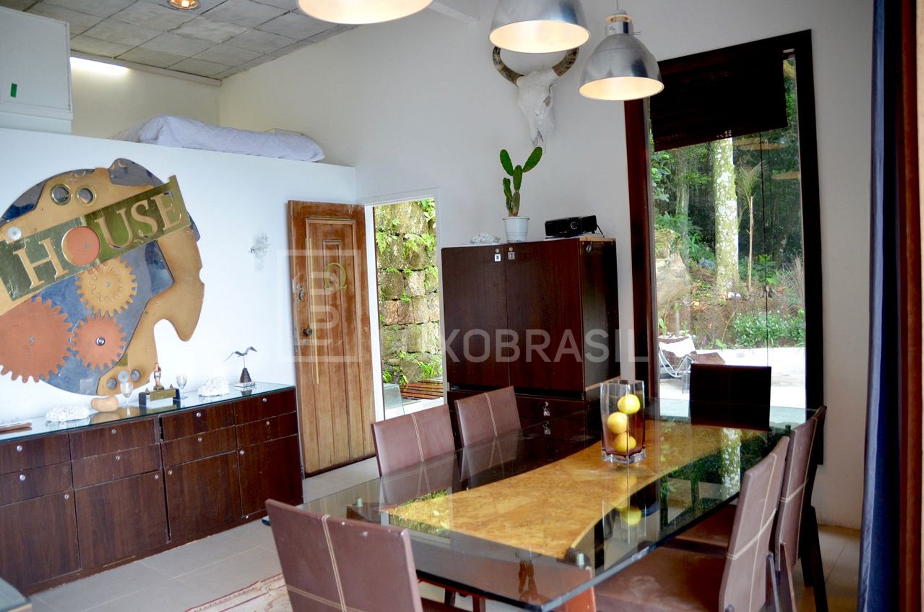 The house has two 8m² mezzanine bedrooms, both of which share the same bathroom. There is a large 50m² living-dining room, air-conditioned with 20,000Btus air conditioning, equipped with a mosquito screen, projection screen, 55-inch cable TV with Wi-Fi, 3m-high sliding doors, leaving the bedrooms and living room with sea views, surround sound and LED lighting. The sofa has a chase and seats 5 people comfortably. It is also possible to convert the sofa into a double bed if this is convenient. The dining table can seat 6 people, and there is also a sideboard for meals. The kitchen is equipped with a microwave oven, blender, espresso coffee maker, conventional coffee maker, 32-liter electric oven, 405-liter stainless steel Frost Free refrigerator and Gourmet faucet. The cupboards are supported by a table for small meals with a hanging stool. Outside, where the deck is located, you can enjoy an unparalleled experience, contemplating nature with views of the sea and the Pedra da Gávea, which receives the sun from 9 a.m. to 4:30 p.m. It can be used for a dip in the 6,000LT natural water mirror with gleaming porcelain tiles that provide an infinite backdrop to the sea. Meals can also be taken outdoors at the stainless steel table that seats four people, along with the sun loungers that make up the veranda. At the entrance to the house, landscaping blends with a stone wall that is over 100 years old, the top of which provides a shower with mineral water. The house also has a solarium, which is the most special part of the house, capable of transforming visits into an unforgettable moment, as well as a garage that allows the parking of 4 passenger vehicles, the entrance to which is via an electronic gate and ramp.
