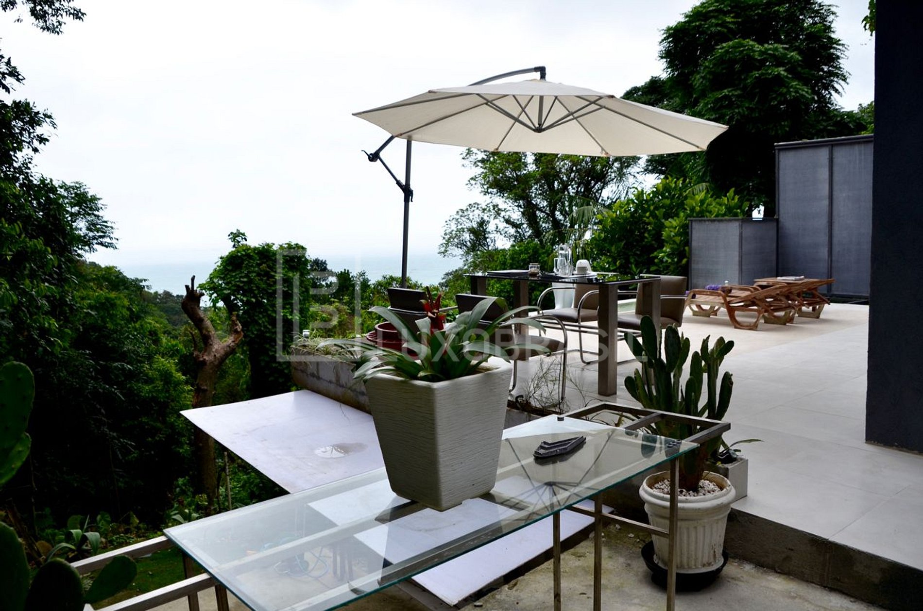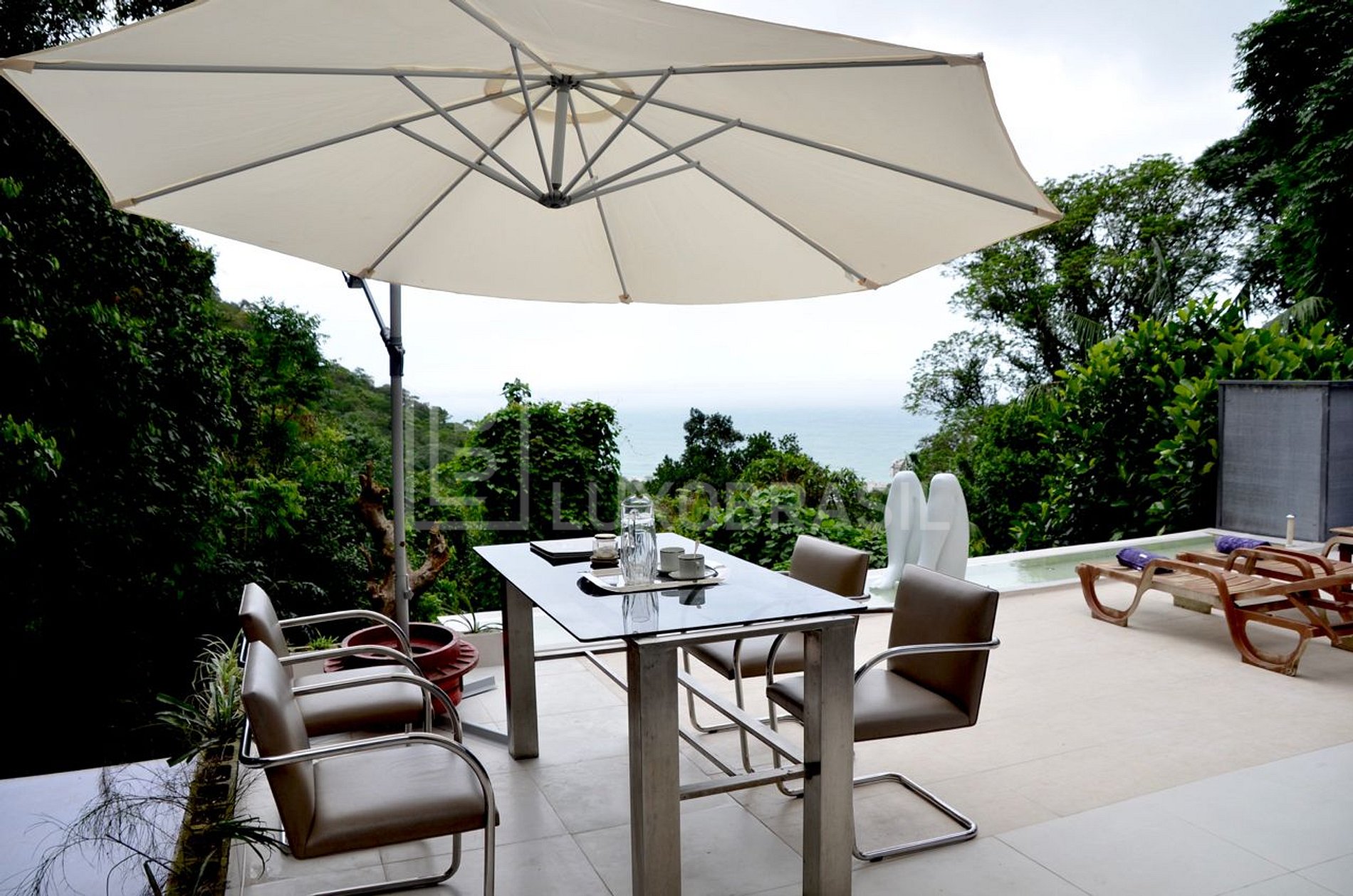 The house has two 8m² mezzanine bedrooms, both of which share the same bathroom. There is a large 50m² living-dining room, air-conditioned with 20,000Btus air conditioning, equipped with a mosquito screen, projection screen, 55-inch cable TV with Wi-Fi, 3m-high sliding doors, leaving the bedrooms and living room with sea views, surround sound and LED lighting. The sofa has a chase and seats 5 people comfortably. It is also possible to convert the sofa into a double bed if this is convenient. The dining table can seat 6 people, and there is also a sideboard for meals. The kitchen is equipped with a microwave oven, blender, espresso coffee maker, conventional coffee maker, 32-liter electric oven, 405-liter stainless steel Frost Free refrigerator and Gourmet faucet. The cupboards are supported by a table for small meals with a hanging stool. Outside, where the deck is located, you can enjoy an unparalleled experience, contemplating nature with views of the sea and the Pedra da Gávea, which receives the sun from 9 a.m. to 4:30 p.m. It can be used for a dip in the 6,000LT natural water mirror with gleaming porcelain tiles that provide an infinite backdrop to the sea. Meals can also be taken outdoors at the stainless steel table that seats four people, along with the sun loungers that make up the veranda. At the entrance to the house, landscaping blends with a stone wall that is over 100 years old, the top of which provides a shower with mineral water. The house also has a solarium, which is the most special part of the house, capable of transforming visits into an unforgettable moment, as well as a garage that allows the parking of 4 passenger vehicles, the entrance to which is via an electronic gate and ramp.
