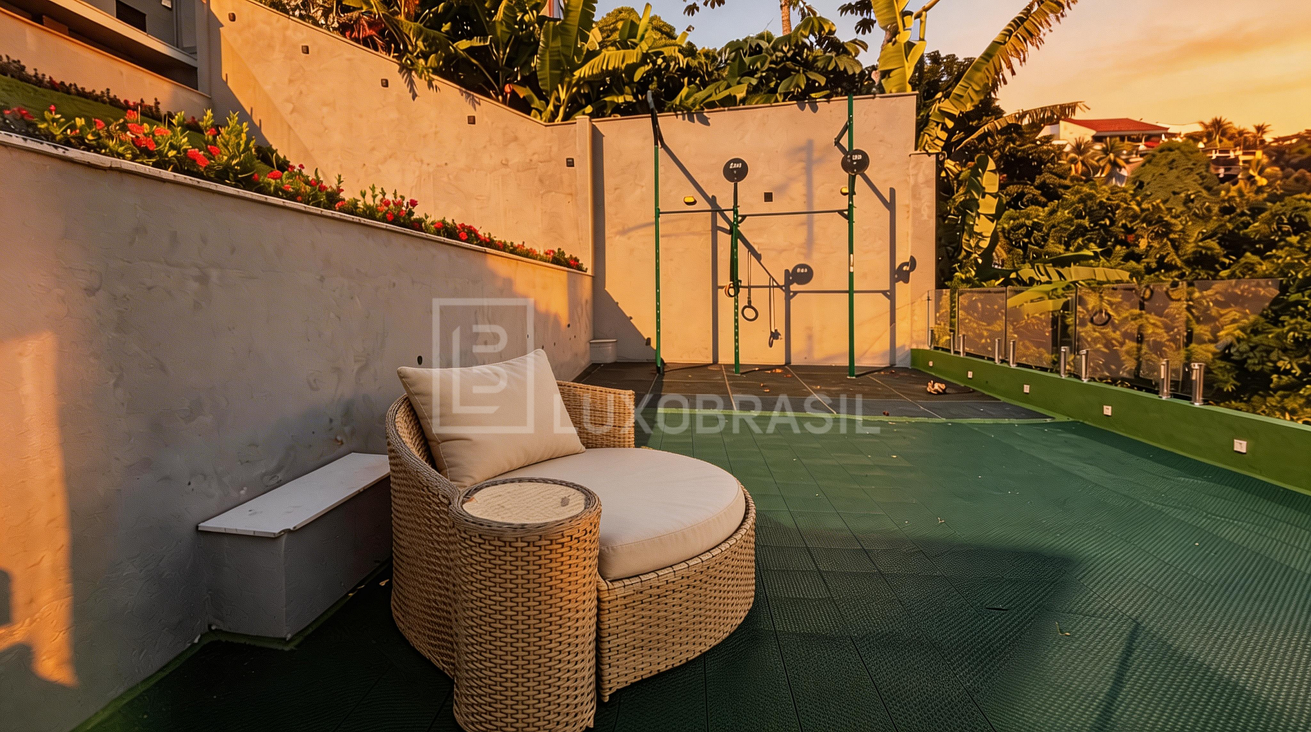 To complete the experience, there is an exclusive area with a crossfit box and bar, ideal for keeping up your workout routine even during your stay.