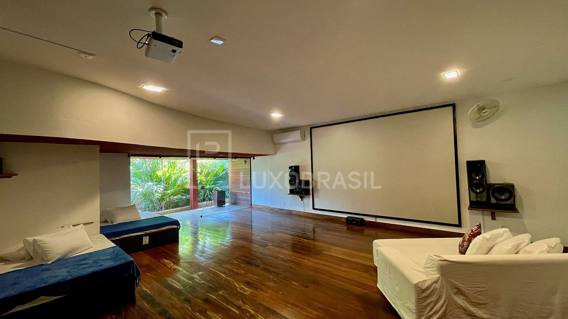 A casa possui 07 suítes, 02 banheiros extras, sala de cinema, piscina, sauna, hidromassagem, quadra de esportes, churrasqueira, sala de jantar, garagem para 04 carros.