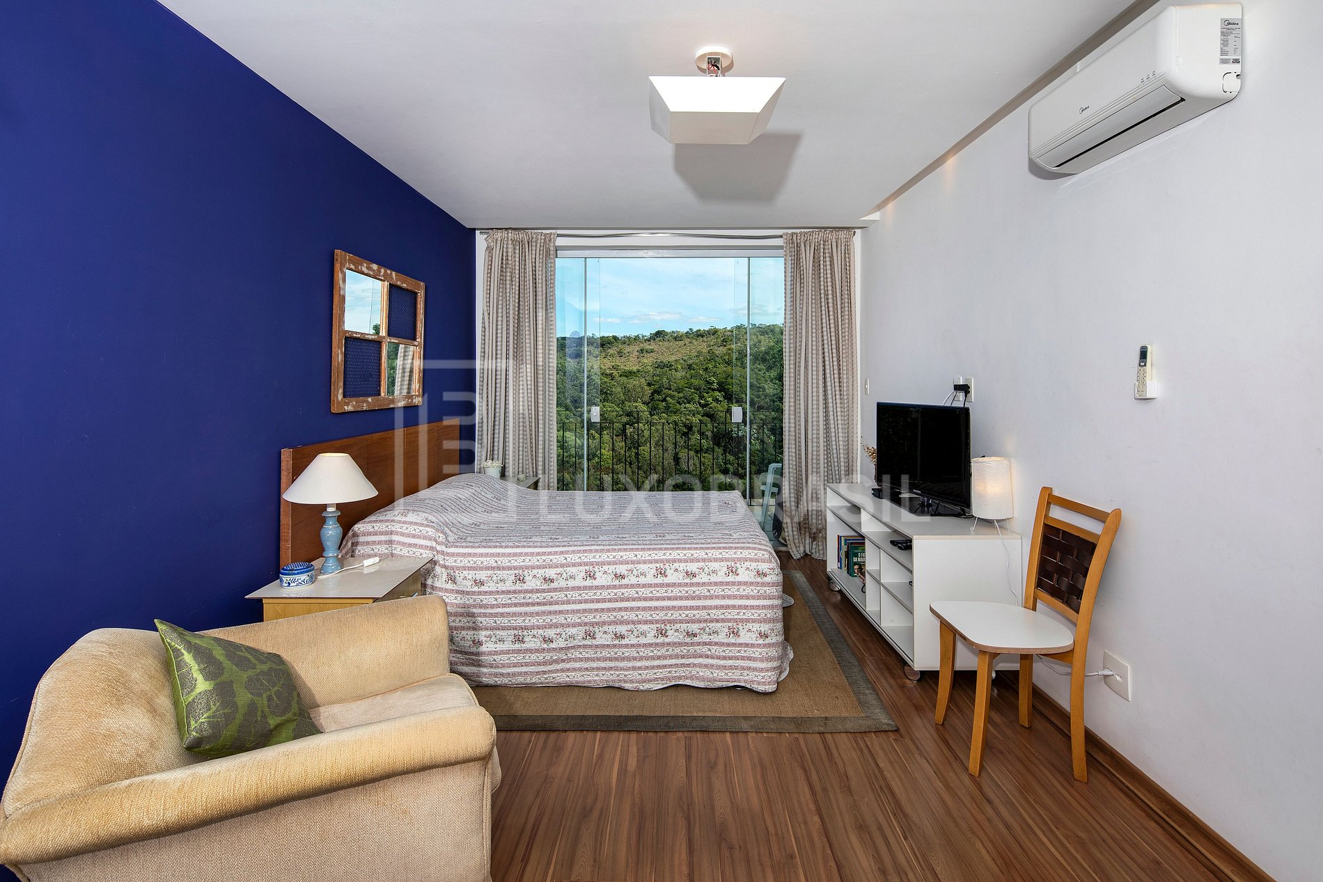 Mansion located in Itaipava, with 08 rooms, 06 suites, 08 bathrooms. The house has Wi-Fi, TV, air conditioning in all rooms, jacuzzi, equipped kitchen, large living room. Your outdoor area has a swimming pool, barbecue, pizza oven and a stunning view of nature and forest. The condominium offers tennis court, football field, 24 hour security and 05 parking spaces.