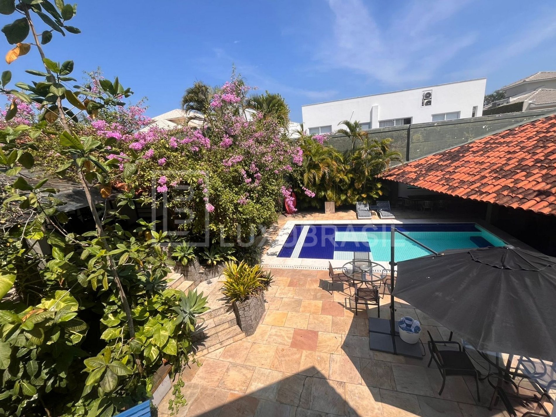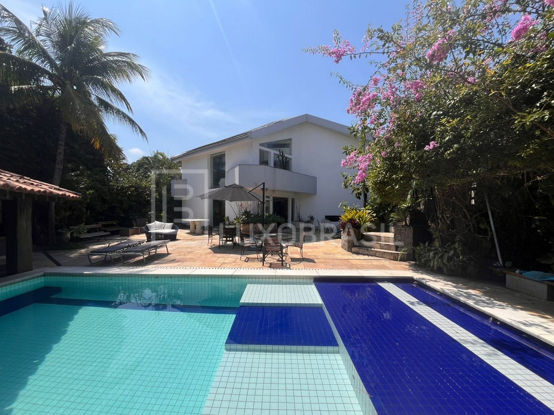 The house has a large outdoor area with swimming pool, barbecue with stove and bench and a large deck. Large living room with bar, kitchen, dining room, 05 suites with modern decor, large canvases and sculptures.