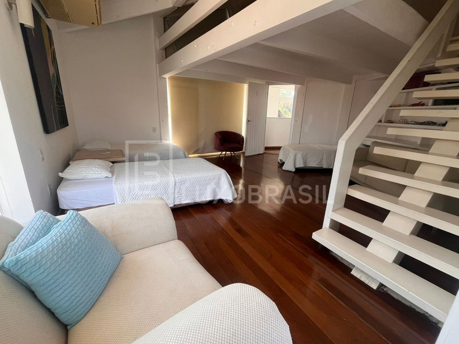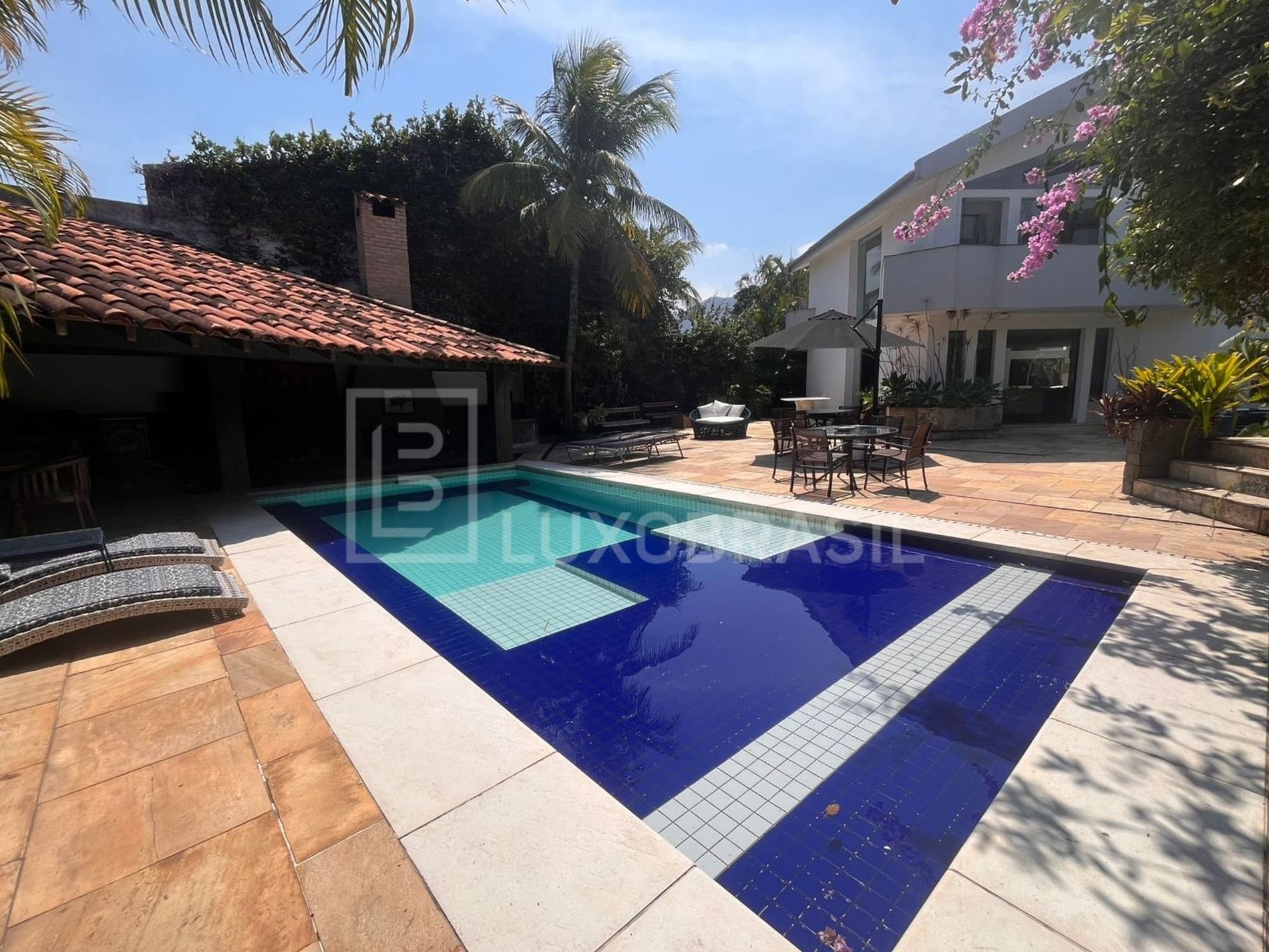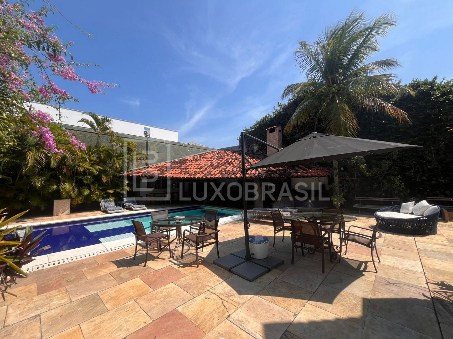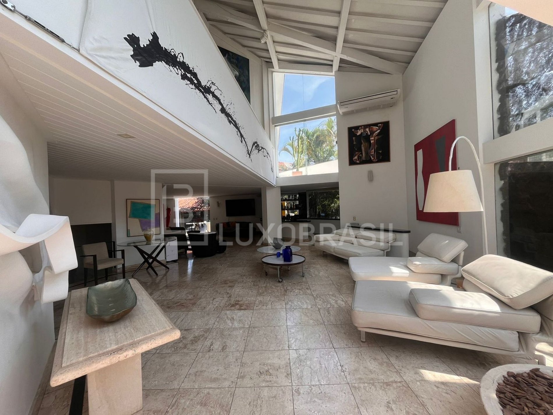 The house has a large outdoor area with swimming pool, barbecue with stove and bench and a large deck. Large living room with bar, kitchen, dining room, 05 suites with modern decor, large canvases and sculptures.