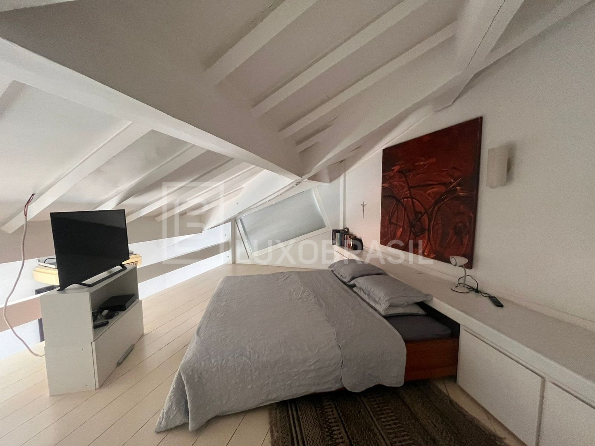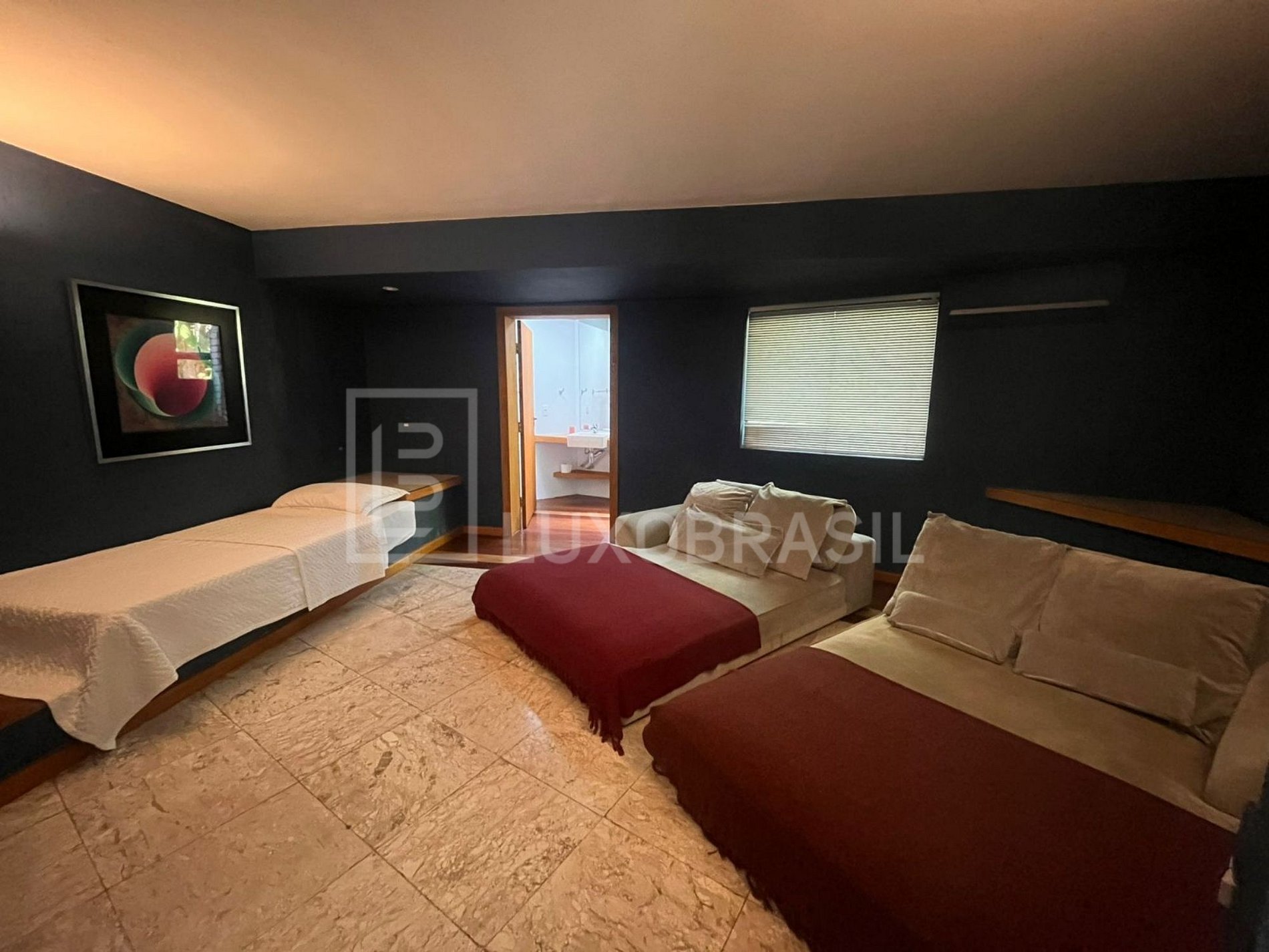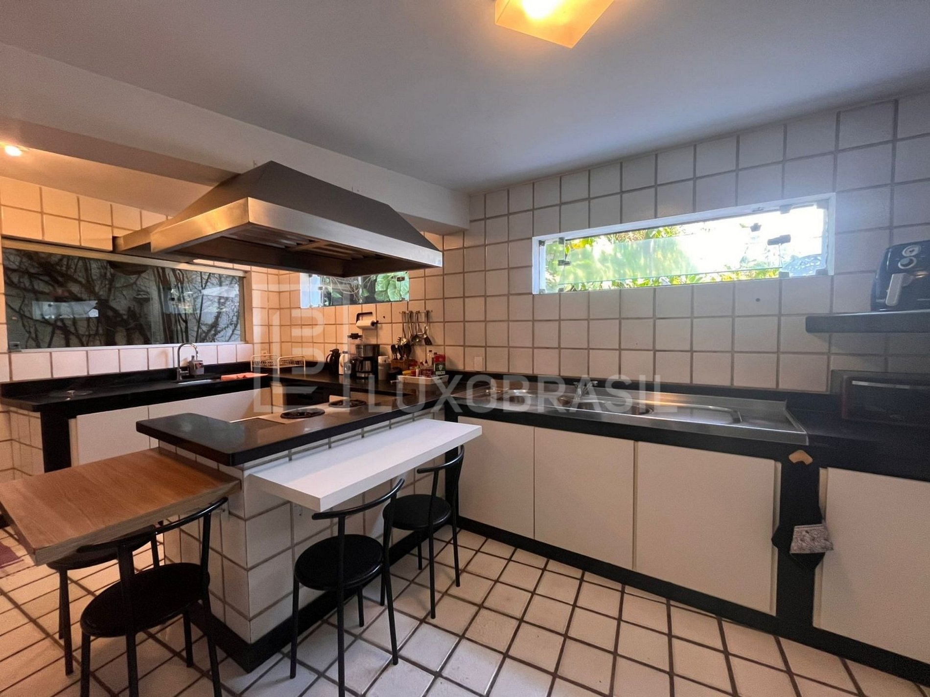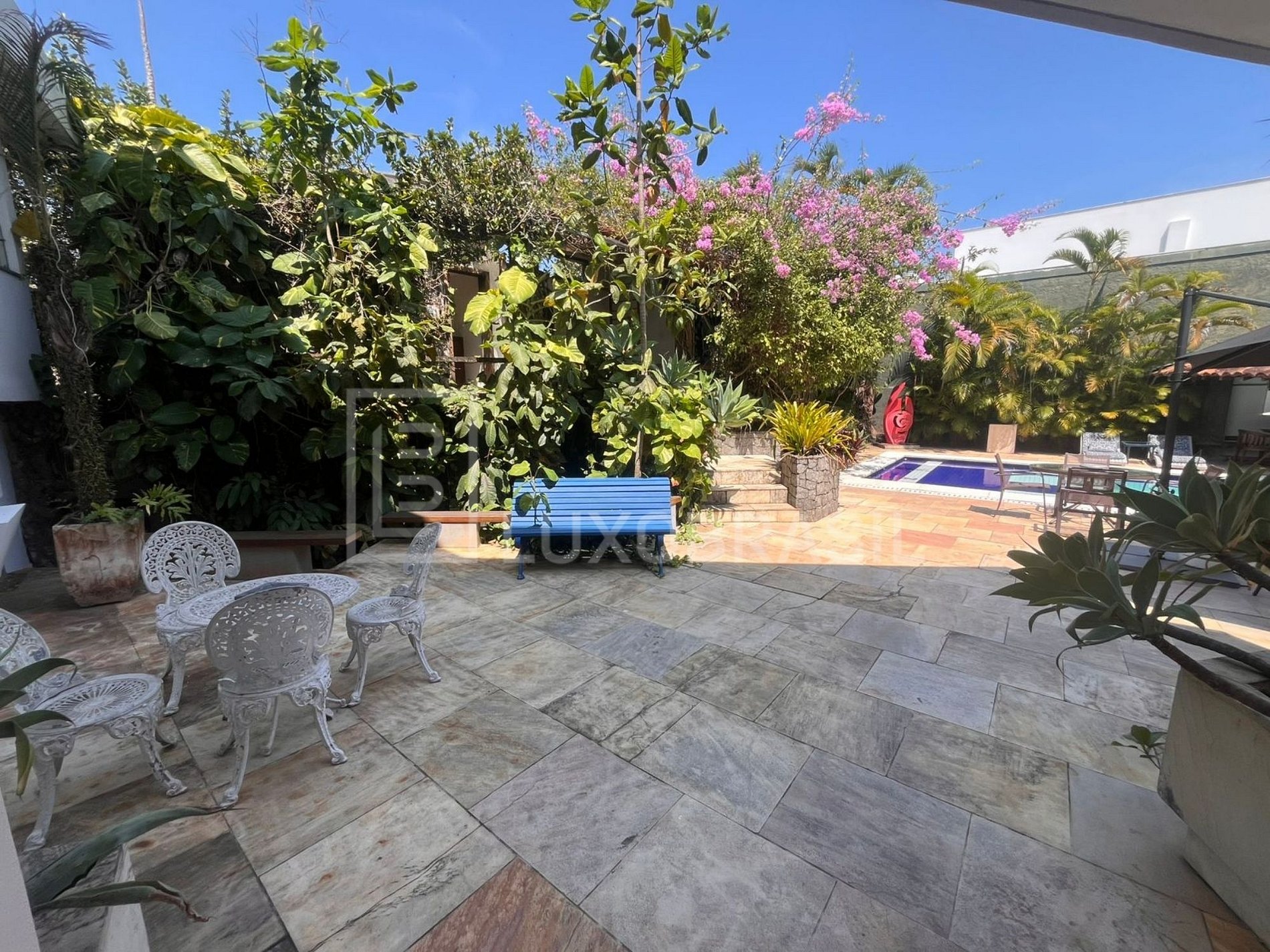 The house has a large outdoor area with swimming pool, barbecue with stove and bench and a large deck. Large living room with bar, kitchen, dining room, 05 suites with modern decor, large canvases and sculptures.