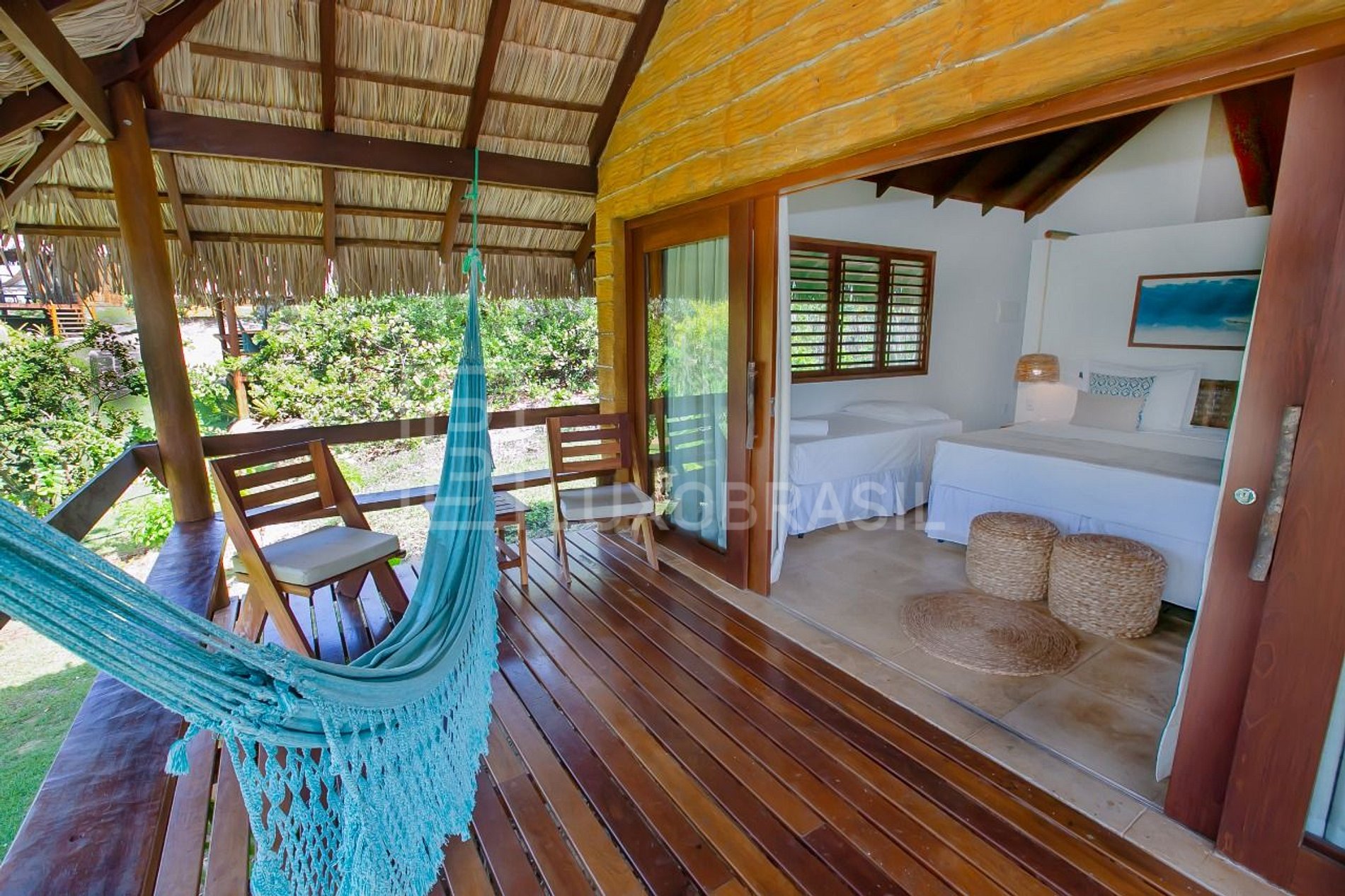 Each accommodation is a unique structure, with bungalows isolated from each other, allowing for a unique experience of privacy and rest. The bungalows are strategically directed towards the beach, set amidst exotic tropical vegetation, but with plenty of comfort. The external structures are replicas of the traditional native taipa (mud and sticks) houses with thatched roofs, but with a cozy interior that offers a king size bed, air conditioning, minibar, safe, jacuzzi (in the deluxe suites), espresso machine, amenities and a relaxing balcony with a hammock and a view of the beach.