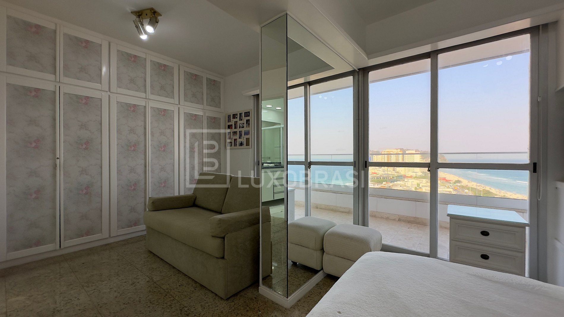 The room is spacious and integrated, with the living room and dining room connected, providing an ideal space for moments of leisure and relaxation. The bar-style kitchen is positioned facing the view, allowing you to prepare your meals while enjoying the incredible view of the beach and the horizon.