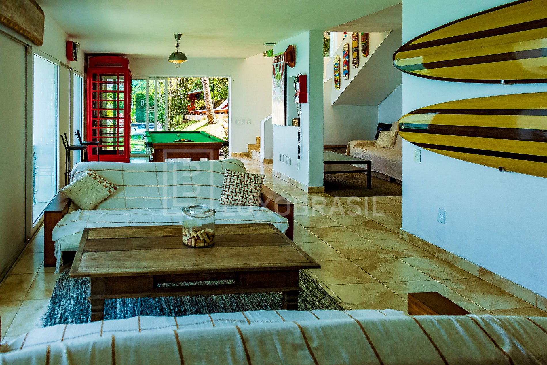 O interior é um verdadeiro convite ao conforto, com sala de estar, sala de jogos com mesa de sinuca, sala de jantar e a cozinha totalmente equipada.
