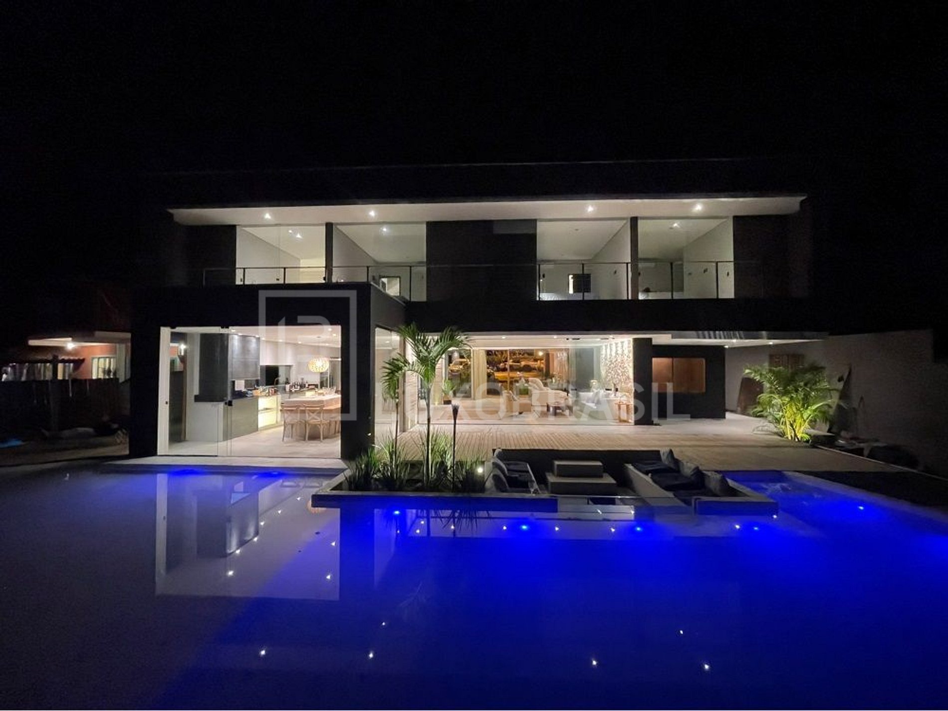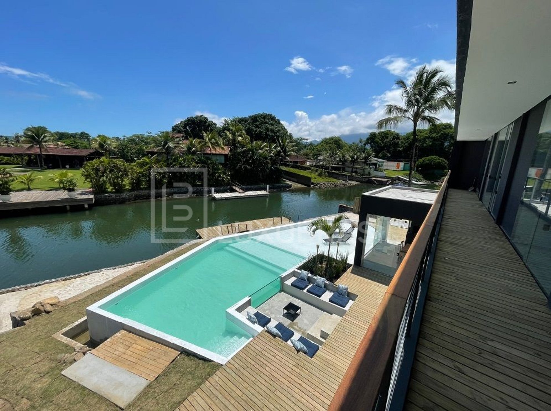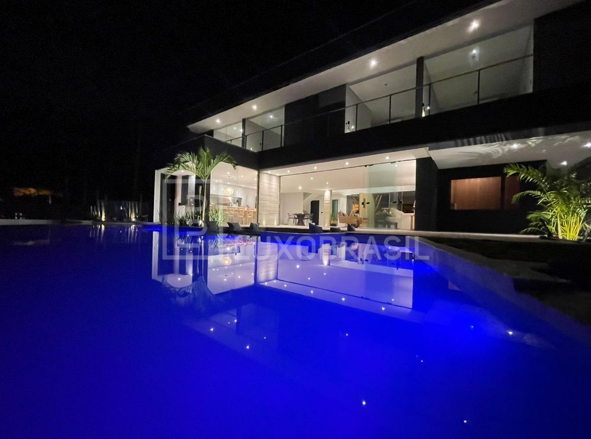 The house has 05 suites, 04 of which face the canal, all with 400-thread-count sheets and air conditioning, a living room, dining room and full kitchen. Its wonderful outdoor area consists of a glassed-in sauna with a canal view, a 90m² resort pool, a whirlpool, a gourmet area with barbecue, a small beach, a private deck for mooring large boats (up to 90 feet) and an ire pit with a glass visor, a beautiful view of the whole house.