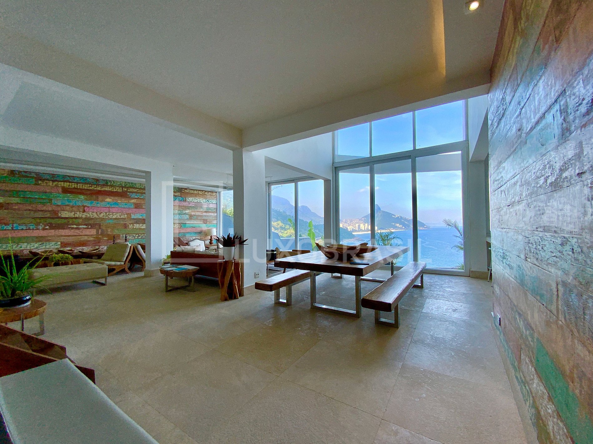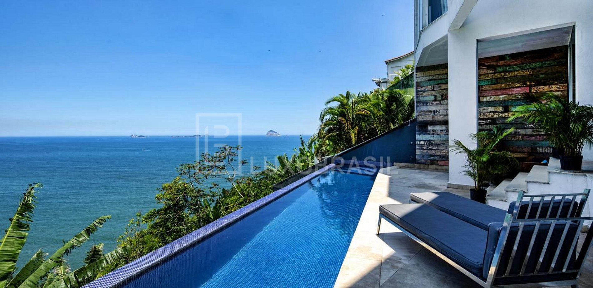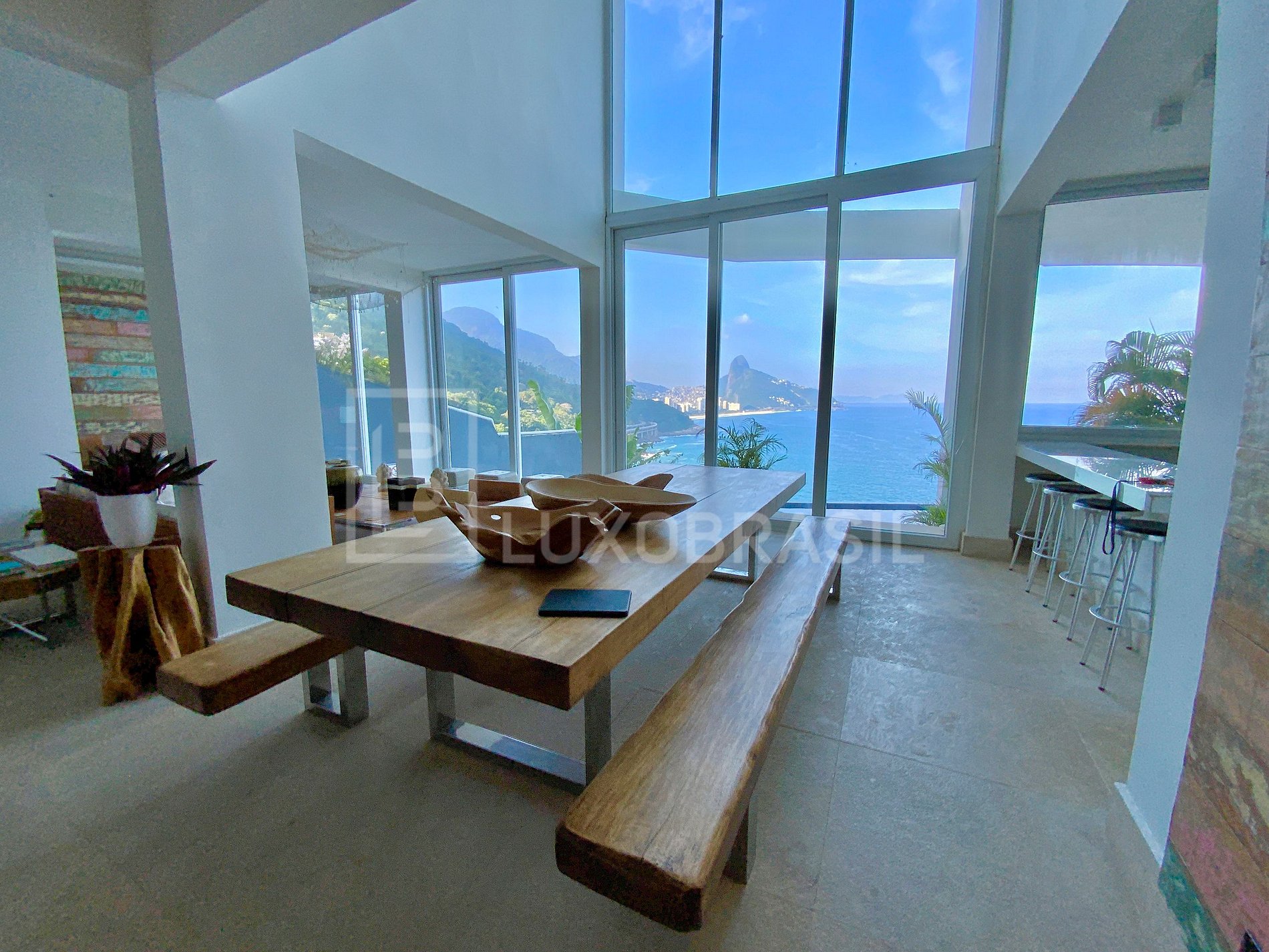 Beautiful and modern mansion located in the famous Joá neighborhood. Known as the "Beverly Hills" of Rio de Janeiro, the neighborhood is home to the biggest movie stars and carioca high class, besides having an unparalleled view and an exclusive beach (Joatinga Beach). The property has 06 wonderful suites, all with ocean views, Queen size bed, and Wi-Fi internet. There are two kitchens, a gourmet kitchen integrated to the living room and overlooking the pool, and an internal kitchen, one next to the other. The house is divided into floors, four floors in total. At the entrance of the house we have the garage, garden and loft. On the second floor we have 03 suites with sea view and a hall, where is the master suite that has a unique view, Queen-size bed, intimate living room with a table with 2 seats, refrigerator, bathroom and closet. On the second floor there are 3 suites with sea view. On the 3rd floor, living room, gourmet area with kitchen and swimming pool with infinity edge. Beautiful living room with clean and tasteful furniture, dining room, toilet and kitchen. Going down to the 4th floor, service area with laundry.