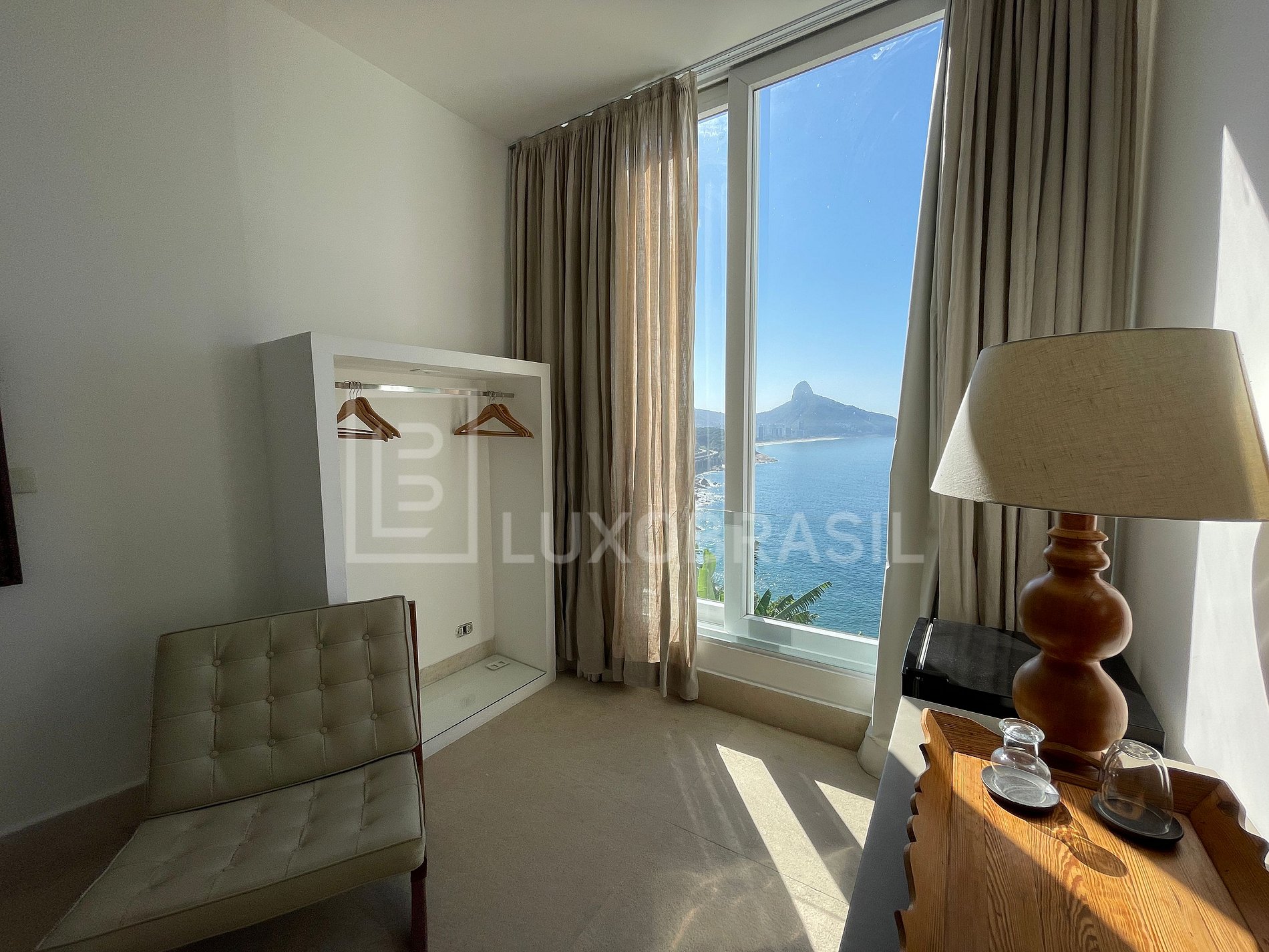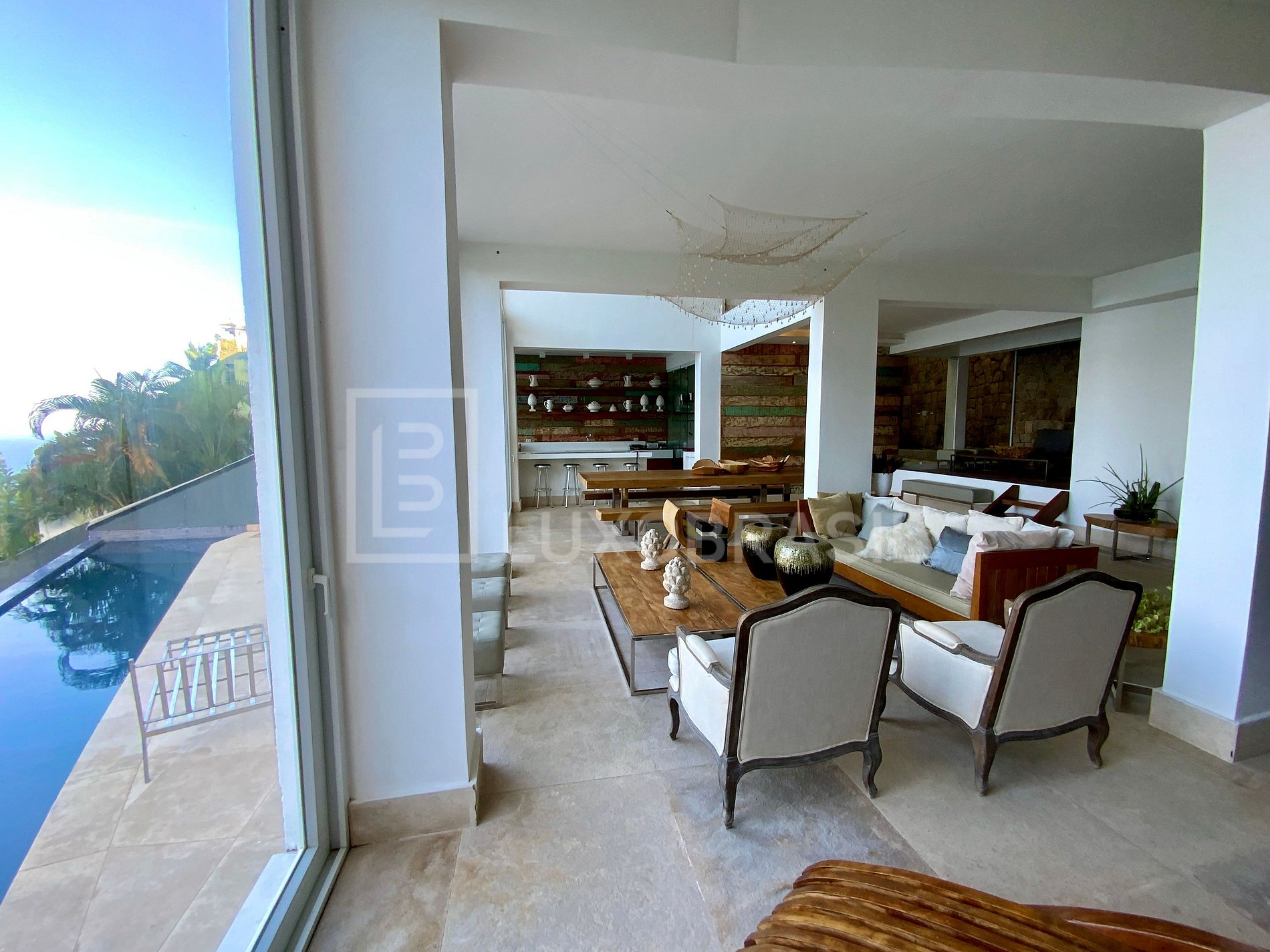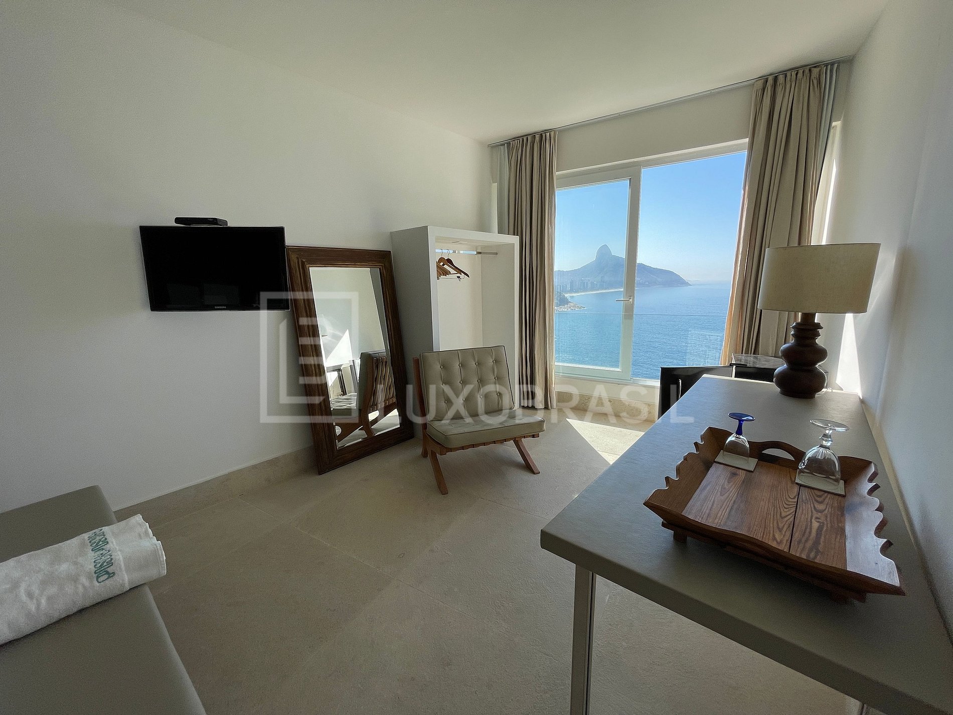 Beautiful and modern mansion located in the famous Joá neighborhood. Known as the "Beverly Hills" of Rio de Janeiro, the neighborhood is home to the biggest movie stars and carioca high class, besides having an unparalleled view and an exclusive beach (Joatinga Beach). The property has 06 wonderful suites, all with ocean views, Queen size bed, and Wi-Fi internet. There are two kitchens, a gourmet kitchen integrated to the living room and overlooking the pool, and an internal kitchen, one next to the other. The house is divided into floors, four floors in total. At the entrance of the house we have the garage, garden and loft. On the second floor we have 03 suites with sea view and a hall, where is the master suite that has a unique view, Queen-size bed, intimate living room with a table with 2 seats, refrigerator, bathroom and closet. On the second floor there are 3 suites with sea view. On the 3rd floor, living room, gourmet area with kitchen and swimming pool with infinity edge. Beautiful living room with clean and tasteful furniture, dining room, toilet and kitchen. Going down to the 4th floor, service area with laundry.