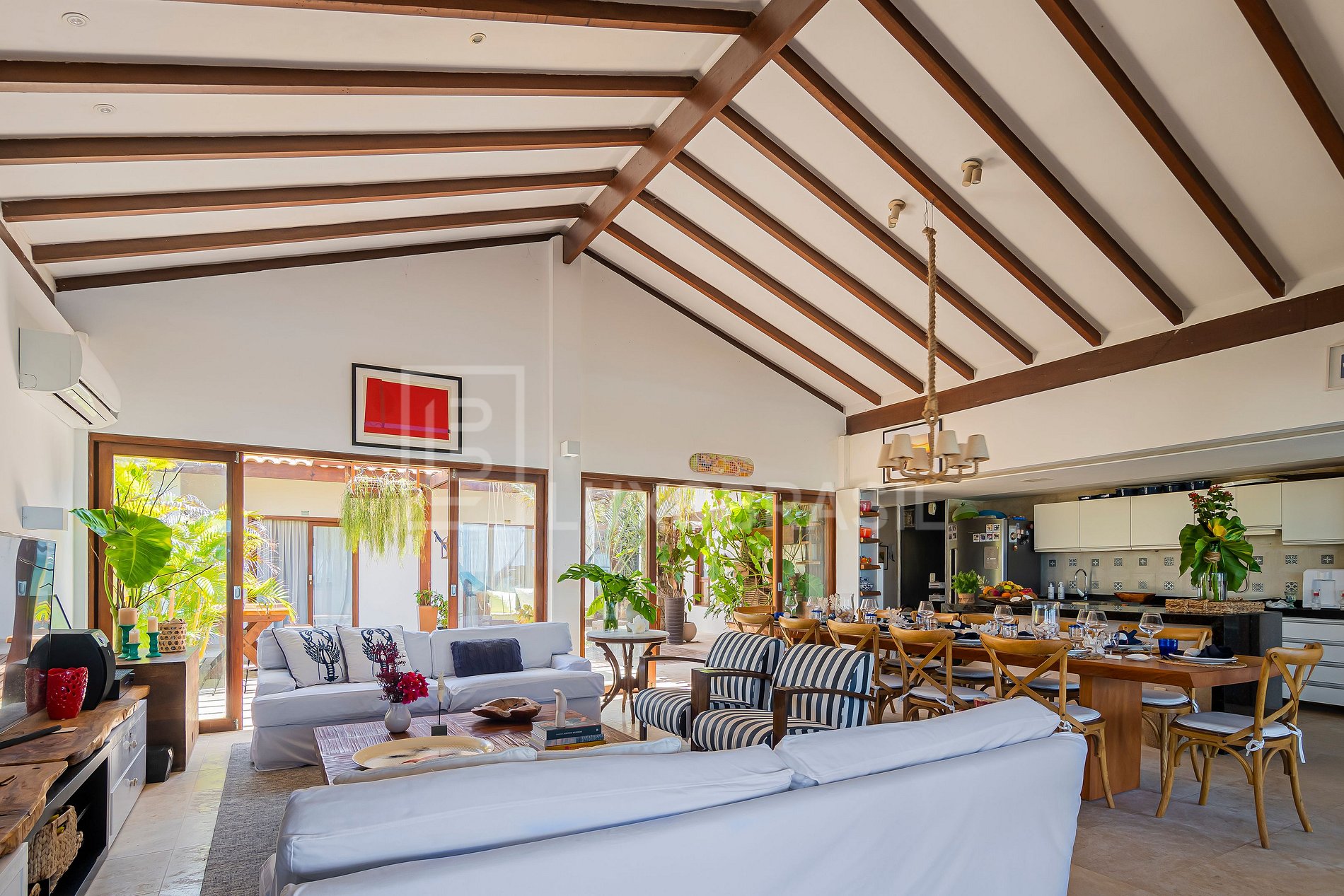 The layout of the house encourages conviviality. With a beautiful and imposing infinity pool, integrated with the gourmet area with barbecue and wood oven, all facing the sea. In the heart of the house, deck with bar, heated pool with cozy whirlpool, perfect for contemplating life.