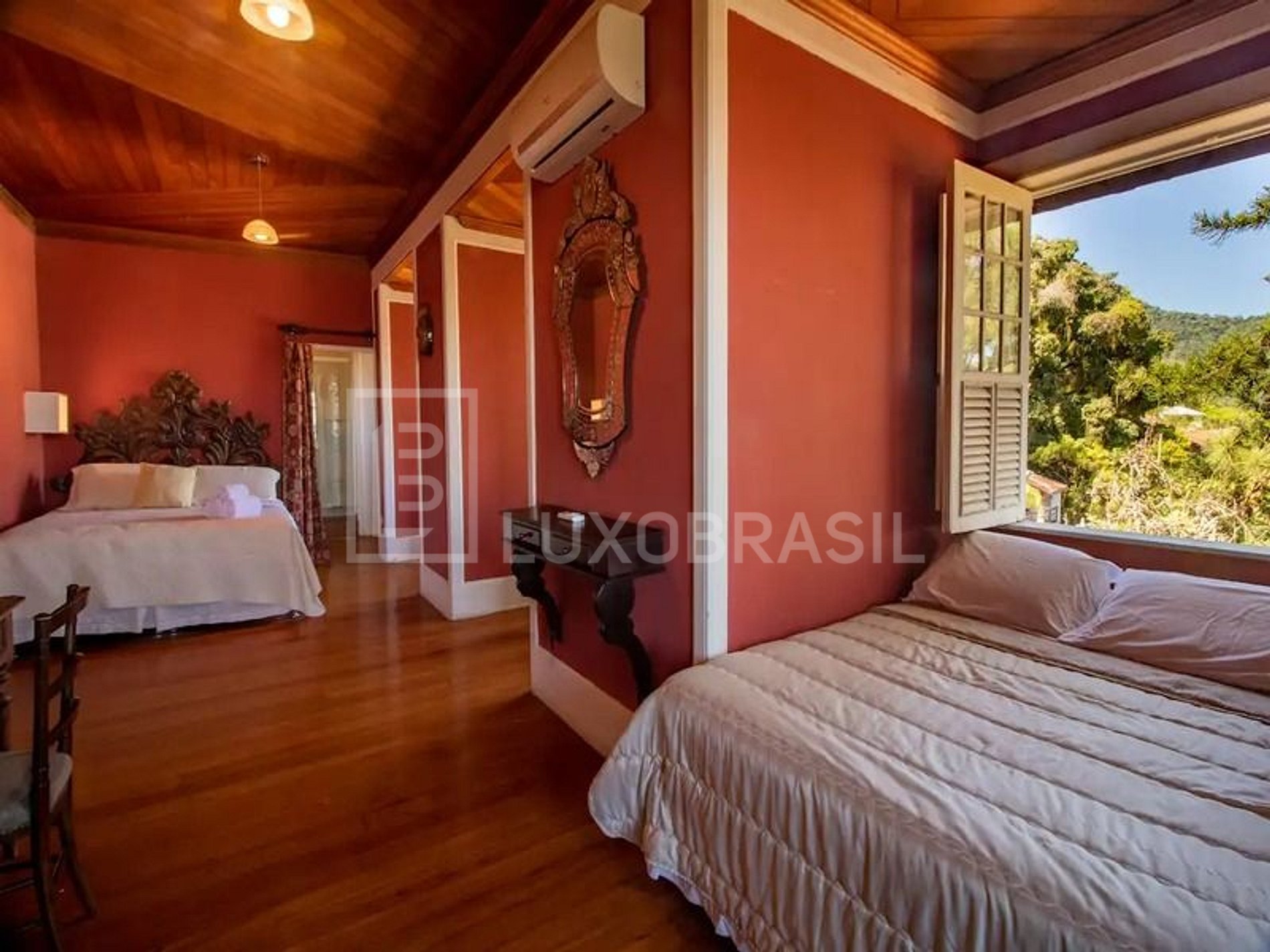 This magnificent mansion, built in the 19th century, is located in one of Rio's most charming neighborhoods, Santa Teresa. Surrounded by nature, it offers comfort and privacy. Its peculiar beauty makes it unique. The mansion sits on top of a hill, with an enchanting atmosphere. It is a work of European art. Its 07 rooms comfortably accommodate 20 people. It is available for lodging and events and has been the setting for several music videos and weddings. Guests will find in the house: garden furniture, a private swimming pool, a large veranda where they can enjoy meals in the middle of the forest. Nearby there are several options for cocktail bars and romantic restaurants overlooking the bay
