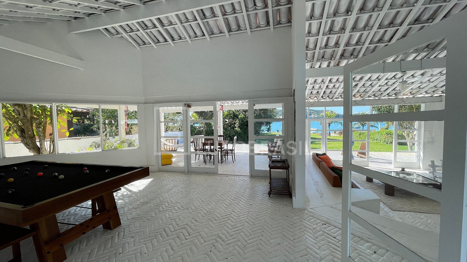 The house has five bedrooms, three of which are suites, all air-conditioned, spacious living room, TV room with cable channels and Netflix, with a comfortable sofa bed, dining room with three environments, complete kitchen with all utensils. Outside, you will find a spacious veranda with hammock, and a beautiful view to the sea, a beautiful swimming pool, sun loungers, gourmet area with barbecue grill, dry sauna with two showers, and game room with pool table.