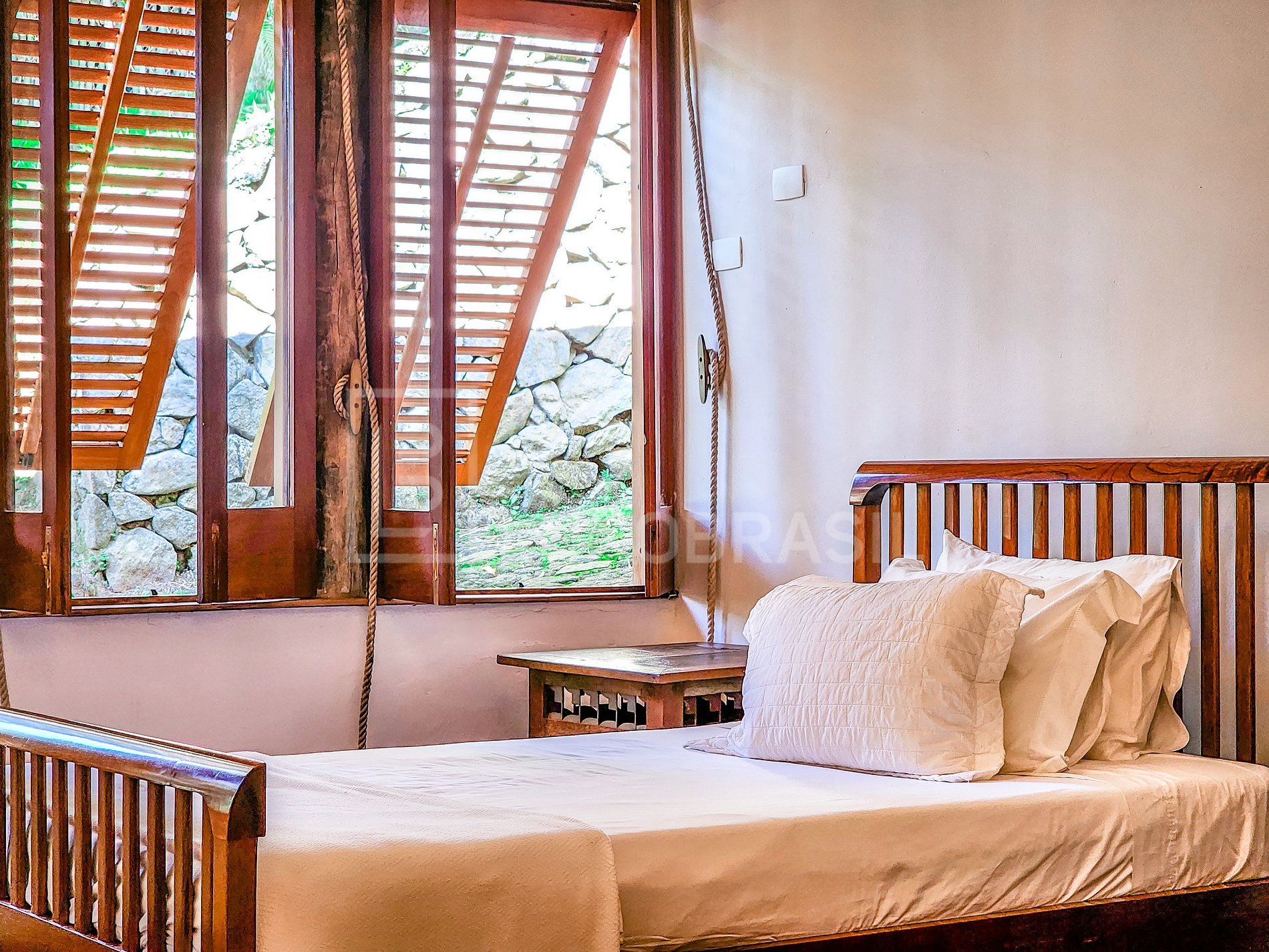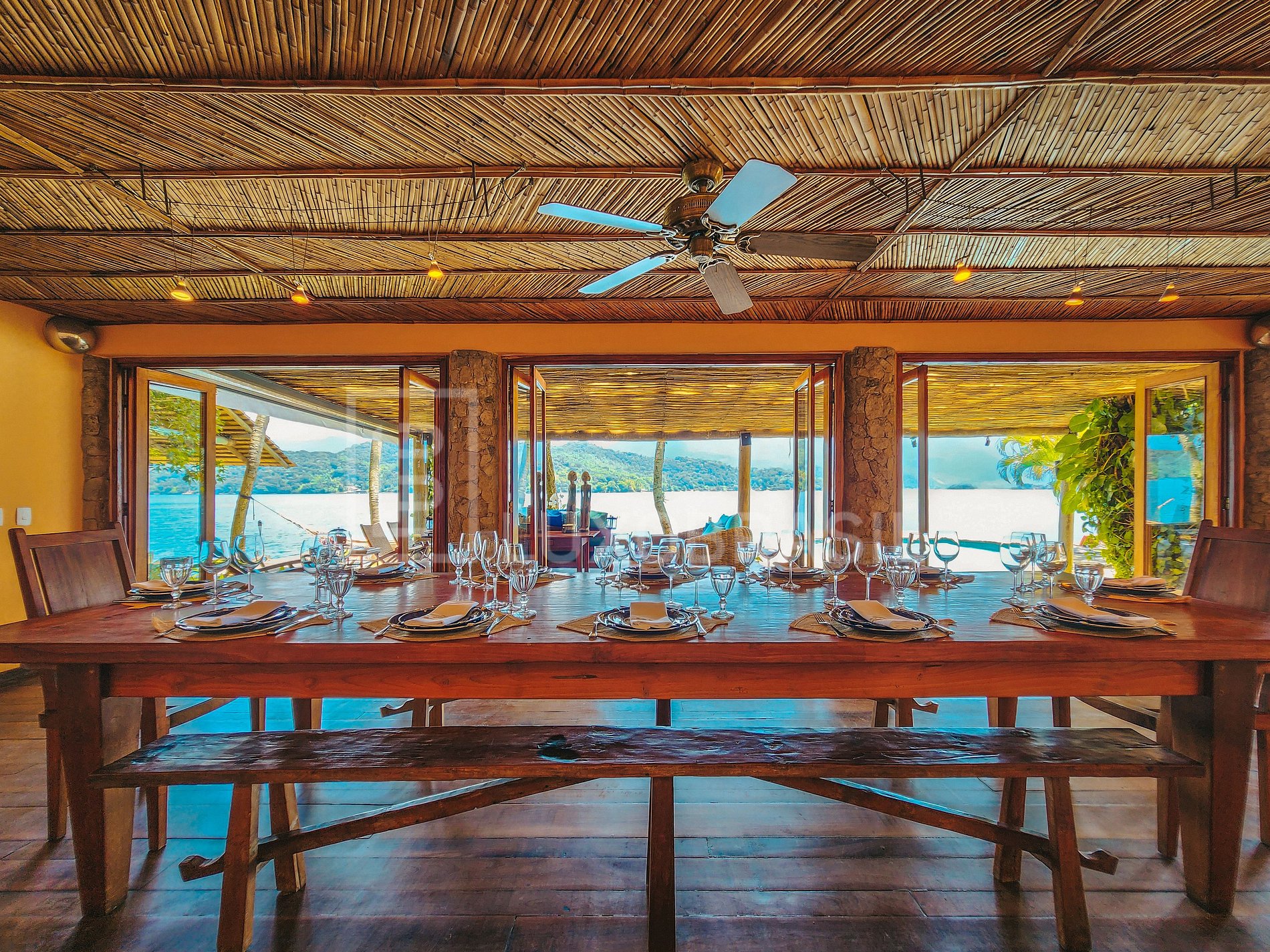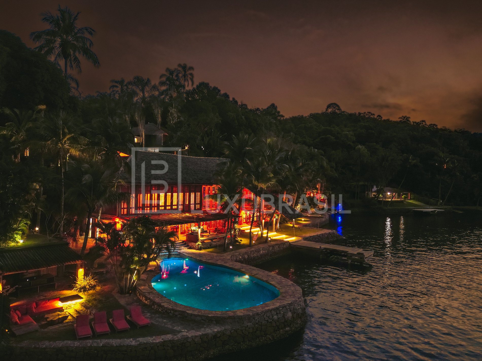 Wonderful mansion located on Cavaco Island, a small paradise amid the immensity of the sea of Angra dos Reis. The mansion has 05 suites in the main house and 02 new suites in the annex of the house. The master suite has ofuro and massage room. It also has a large living room, TV room with pool table, dining room, full kitchen, outdoor fireplace, swimming pool, dry sauna, steam sauna, full gym, heated pool with 25 meters lane for swimming, gourmet area with barbecue and pizza oven. In addition to an exclusive helipad. Common area of the condominium with tennis court, football field and playground.