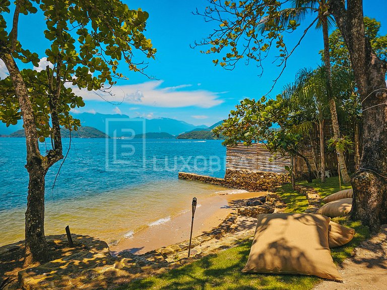 Wonderful mansion located on Cavaco Island, a small paradise amid the immensity of the sea of Angra dos Reis. The mansion has 05 suites in the main house and 02 new suites in the annex of the house. The master suite has ofuro and massage room. It also has a large living room, TV room with pool table, dining room, full kitchen, outdoor fireplace, swimming pool, dry sauna, steam sauna, full gym, heated pool with 25 meters lane for swimming, gourmet area with barbecue and pizza oven. In addition to an exclusive helipad. Common area of the condominium with tennis court, football field and playground.