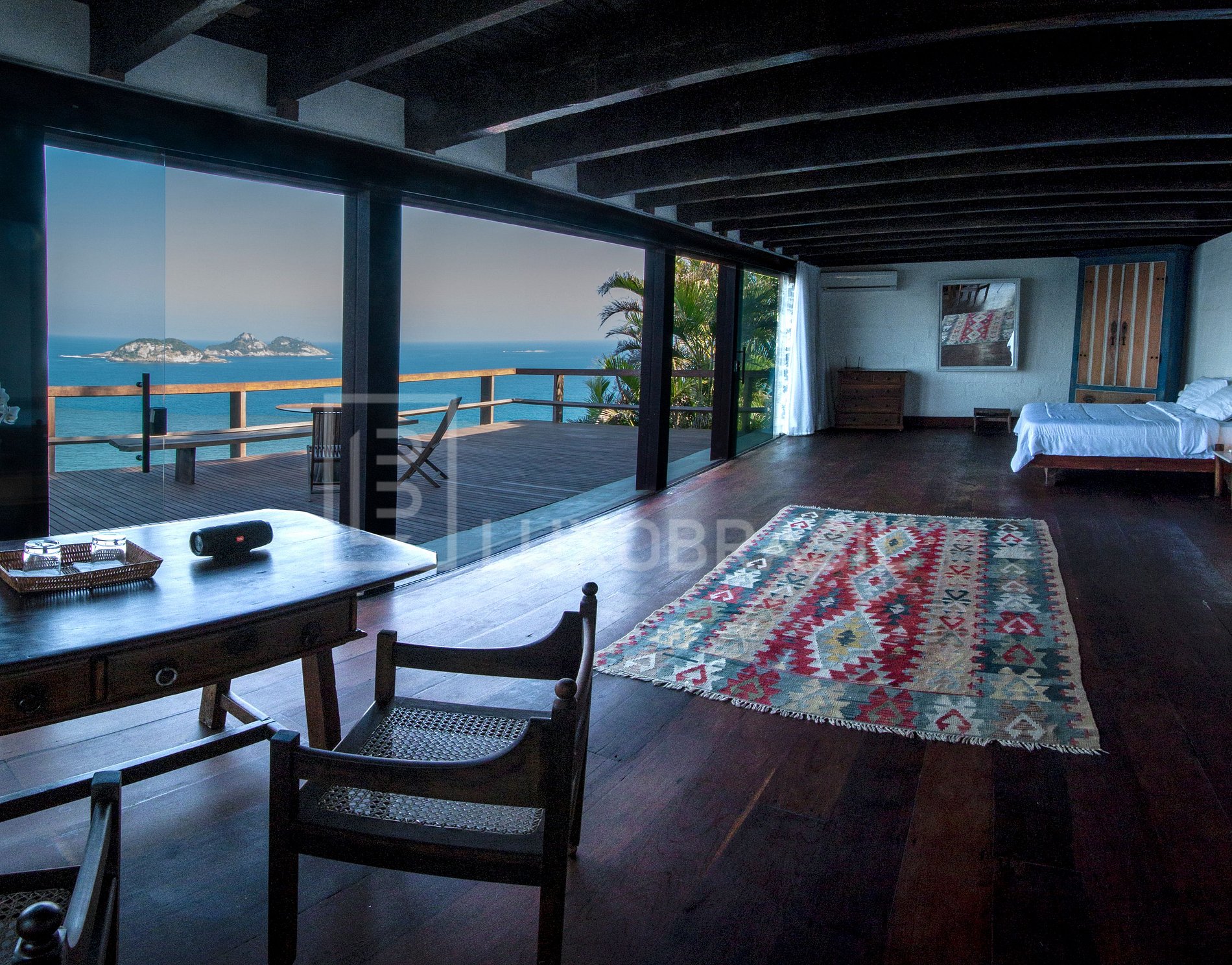 * Master Suite (Loft) - Master suite of 132 m² with sea view and private deck, king size bed, 02 split air conditioners, wi-fi, 50 inch smartv, safe and minibar. Bathroom with hair dryer and digital shower. Hair dryer, shower, mirror with indirect lighting and digital shower - R$ 4,375.00/night (without breakfast)