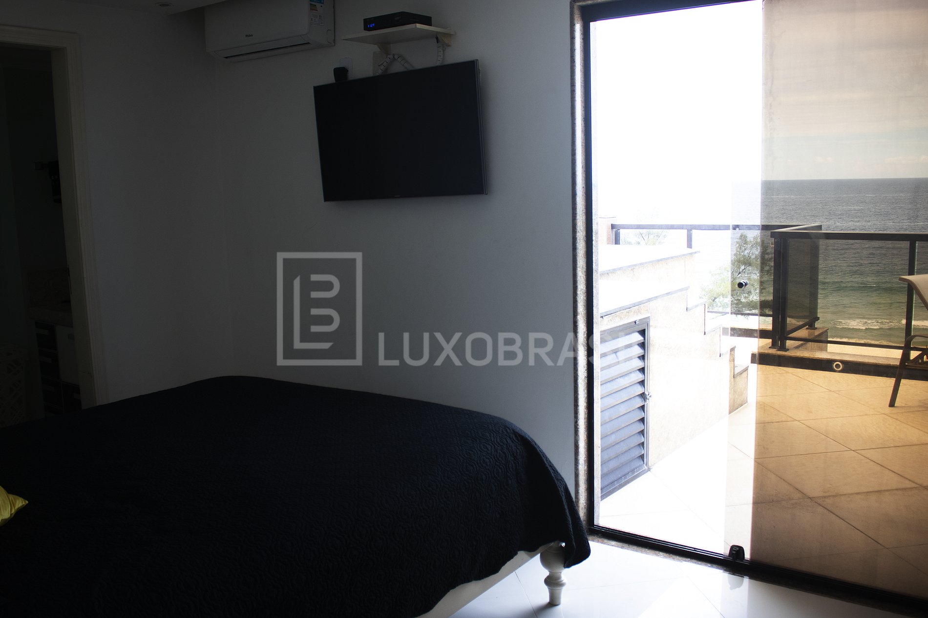 Exclusive penthouse of high luxury, sea front with private pool and waterfall. With paradisiacal visual that provides a beautiful sunset and sunrise! View of the mountain and beach! Cozy environment that provides gourmet area, outdoor nautical sofa set, barbecue, private pool and the building. It has 2 suites, both with double bed. The Penthouse is reserved without flats on the same floor, the lift with exclusive exit to the penthouse. TOTAL PRIVACY AND SECURITY!