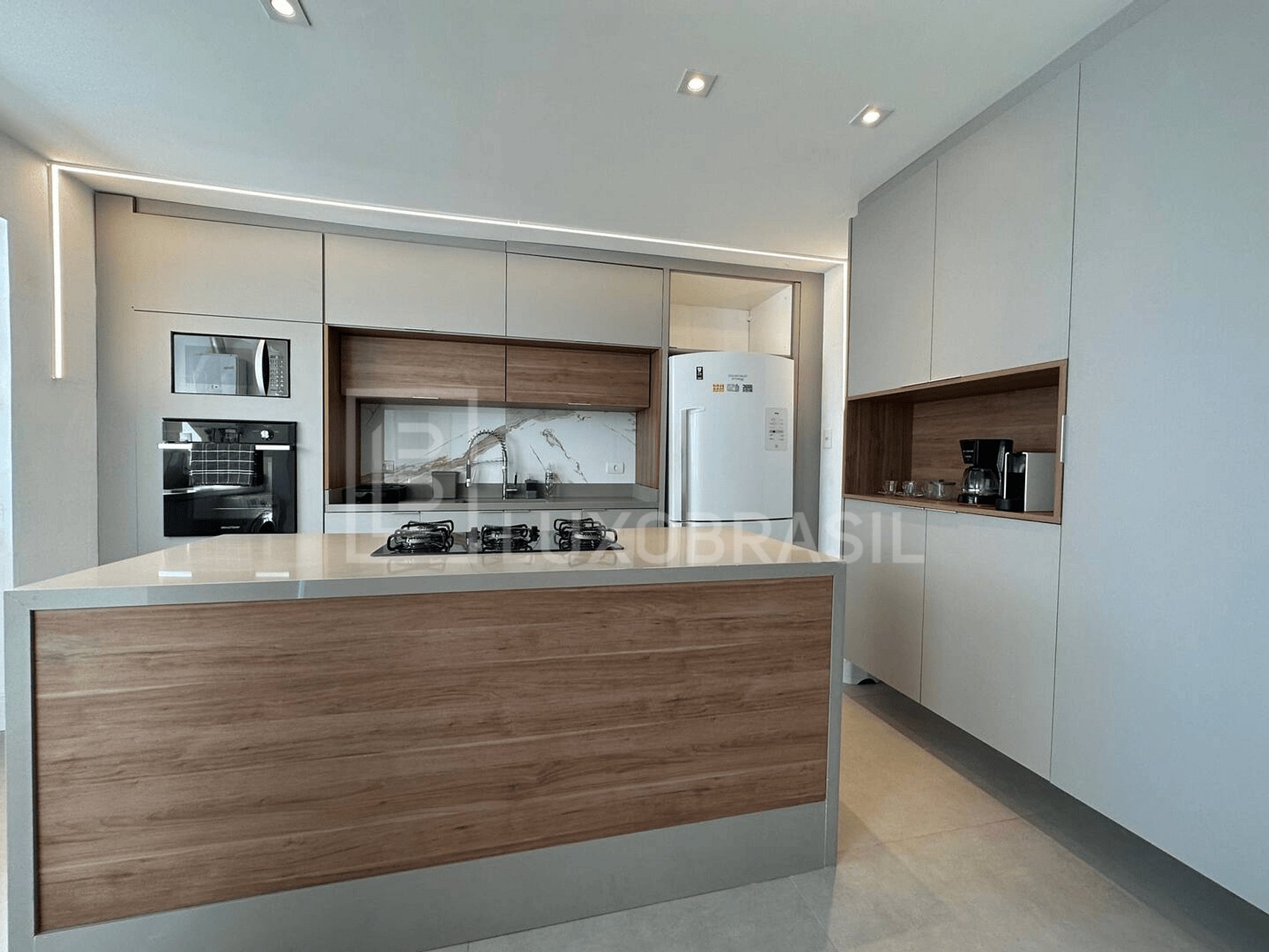 There are 04 suites, 02 with whirlpool baths, integrated living and dining room, toilet, full kitchen with appliances and necessary utensils. Balcony of 110m² with swimming pool, barbecue and plenty of space for leisure.