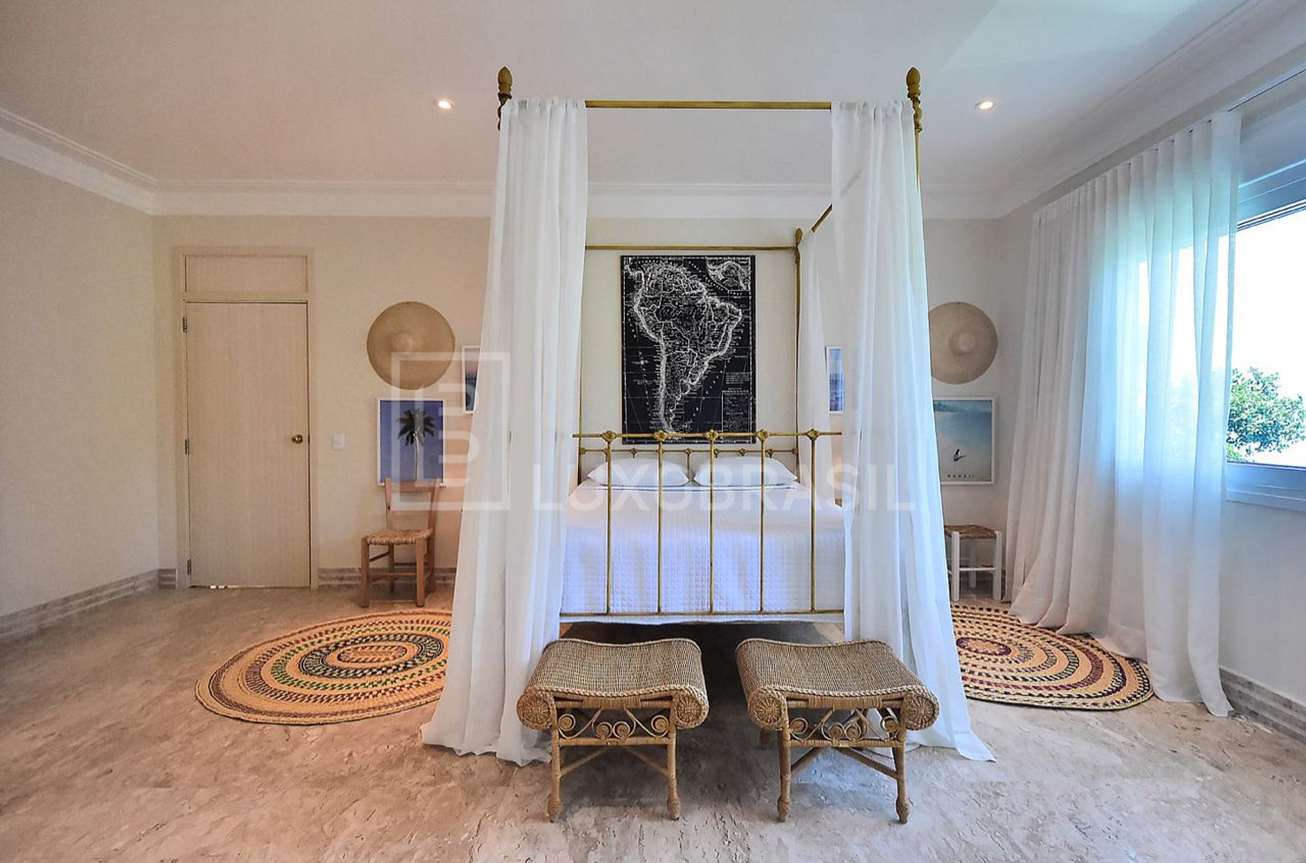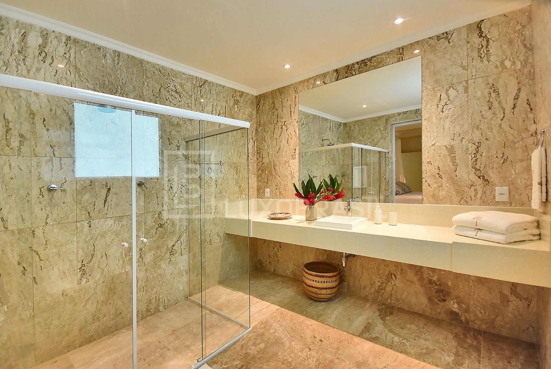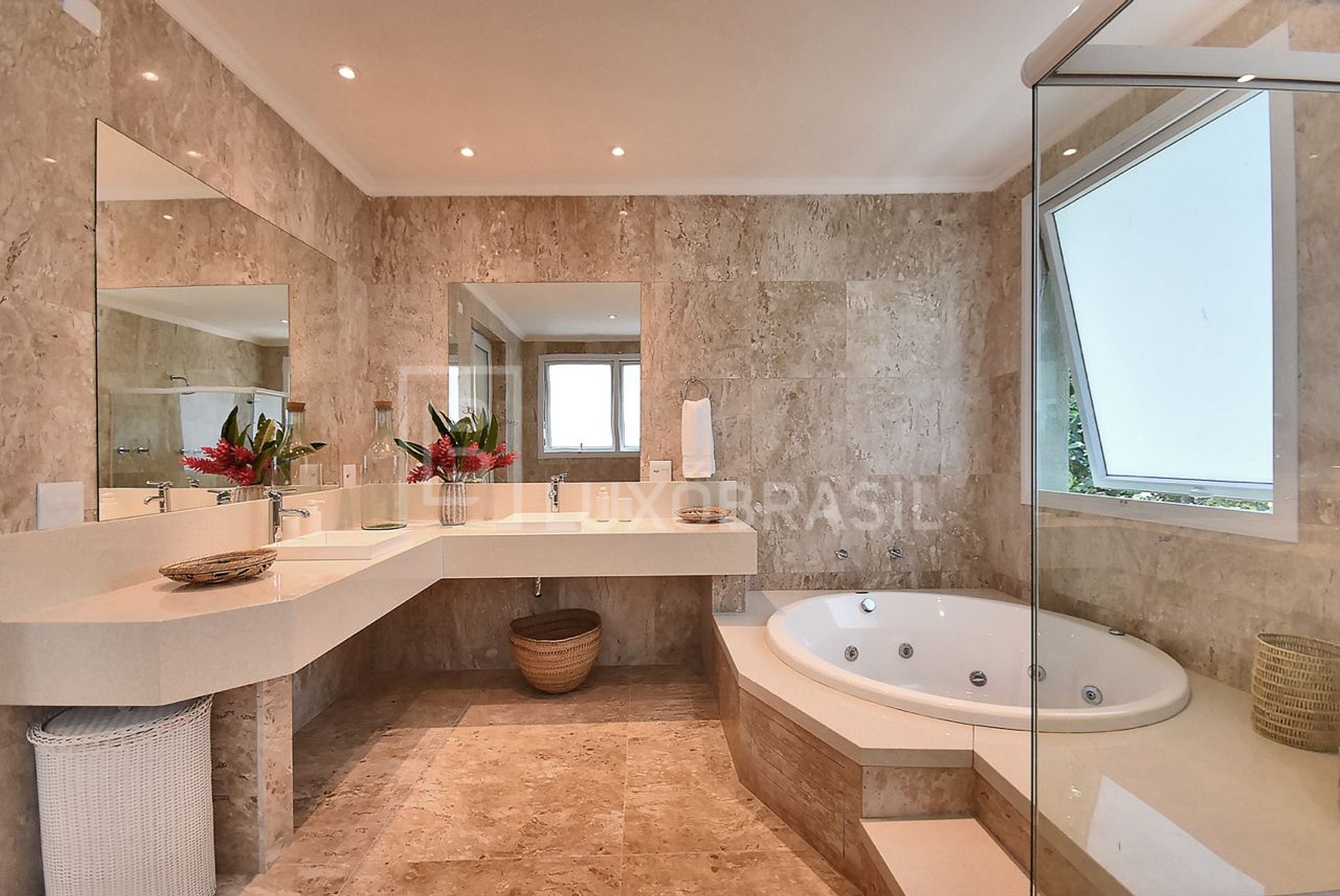 Its privileged outdoor area overlooking the sea, with swimming pool and sun loungers, gourmet area with barbecue and beautiful table for 10 people, balcony with lounge and table, sauna all in marble. It still has access to the beach, deck for nautical support, a beautiful chapel and ecological trail.
