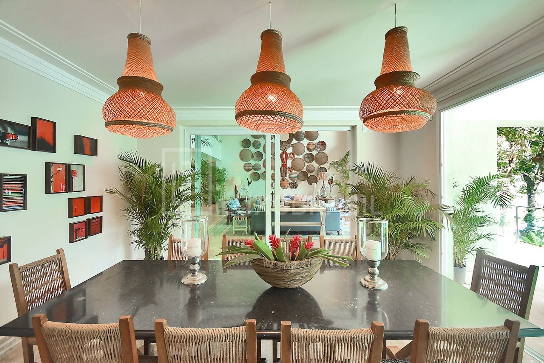 The mansion consists of entrance hall, living room, dining room with table for 08 people, TV room, environment with table for 06 people, toilet, fully equipped kitchen with pantry. On the second floor, are the 06 stunning suites, all with air conditioning, and some suites with access to balcony. Also on this floor, there is a second TV room.