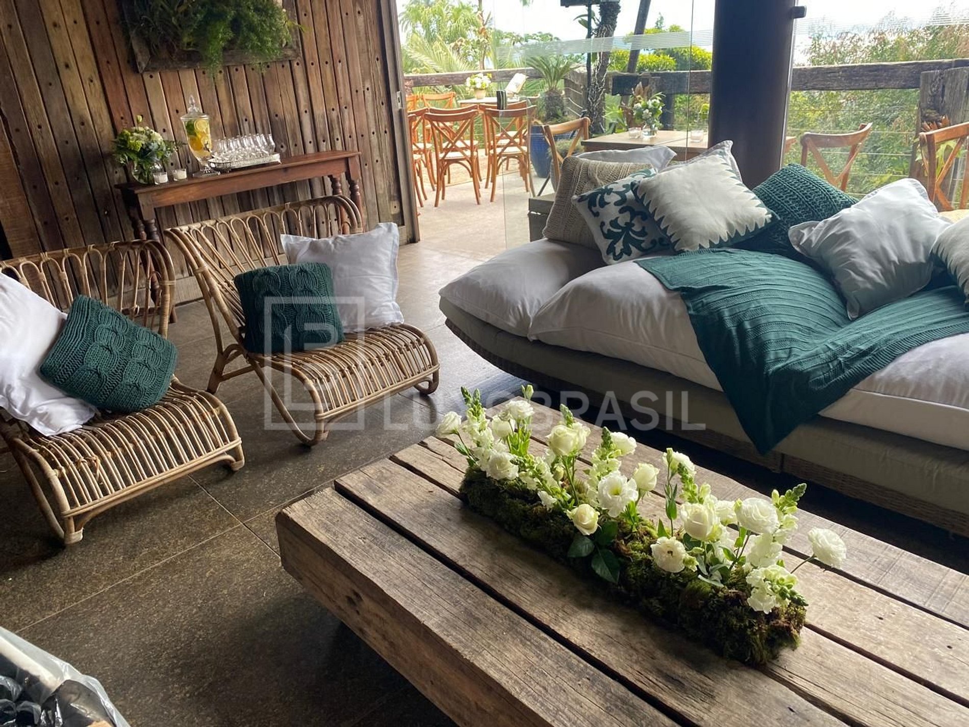 With a high standard rustic style project, with native stones, glass wood and a beautiful panoramic view of the islands and sea of ​​Barra da Tijuca. The furniture accommodates up to 06 people comfortably in its 02 available rooms. The sidewalk for the event has a beautiful swimming pool with waterfall, sauna, gourmet space with barbecue and fire pit, vast green area, video room, living room, ample space with tables and chairs, social bathroom, terrace with panoramic view and an elevator. The space is 100% equipped, comfortable and spacious, suitable for small events, as well as photoshoots and filming. Ideal for lunch or dinner: fully equipped kitchen with barbecue and wood stove, wine cellar and beer. Perfect for a day of photos and recordings, with different views and light, also ideal for a wedding day. The space has an elevator and has two suites and a dry sauna.