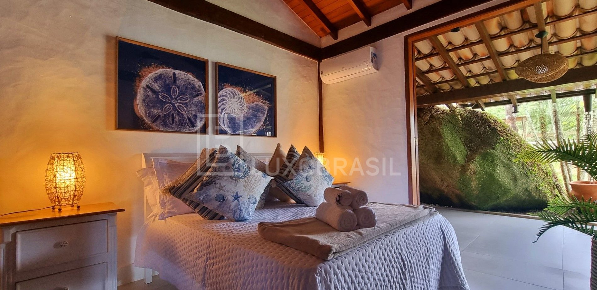 O seu espaço externo é igualmente impressionante, apresentando um ambiente gourmet completo com churrasqueira e forno de pizza. Uma ampla piscina e um deck convidativo oferecem uma atmosfera relaxante com vistas deslumbrantes para o mar, tornando este local ideal para entretenimento e lazer.
