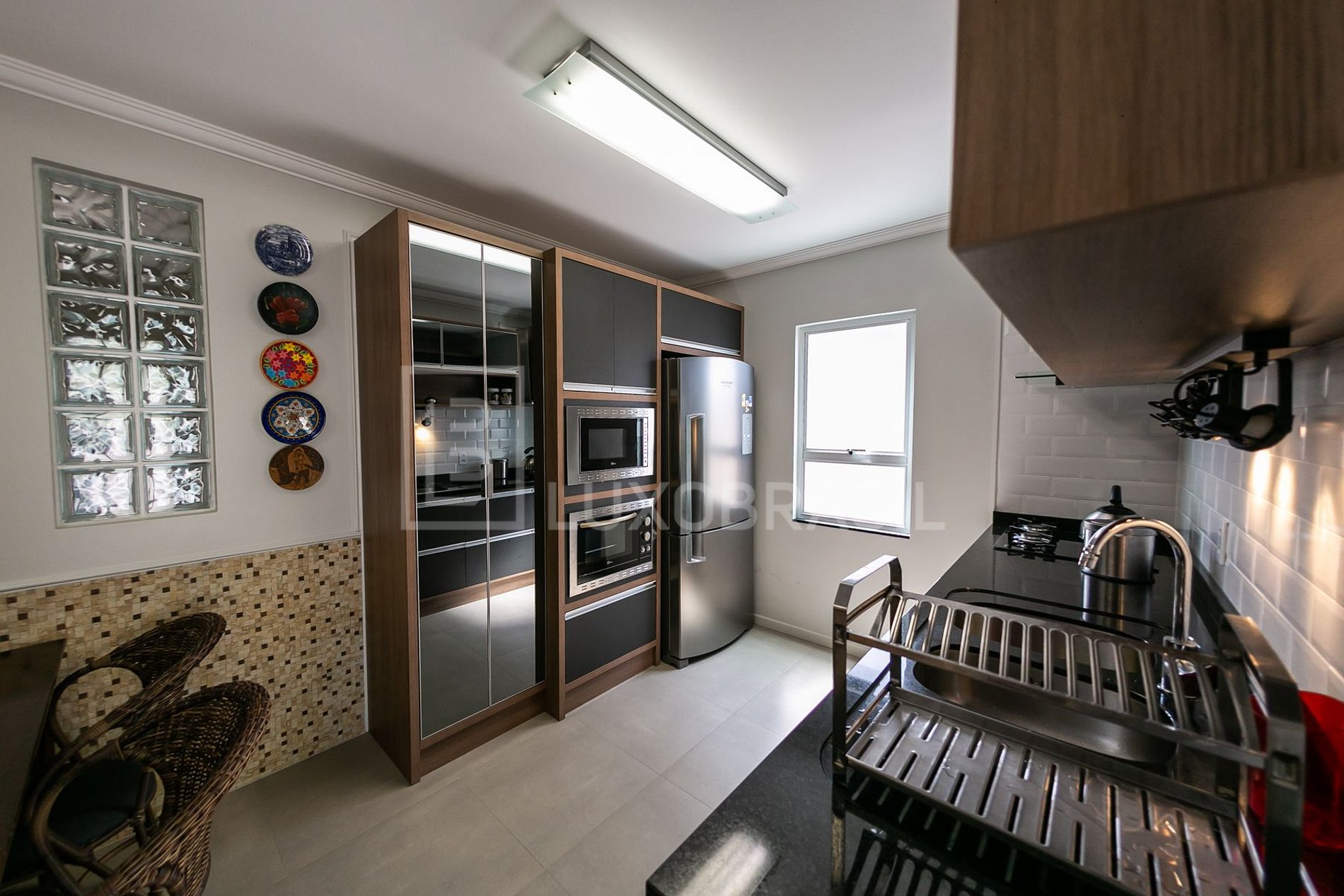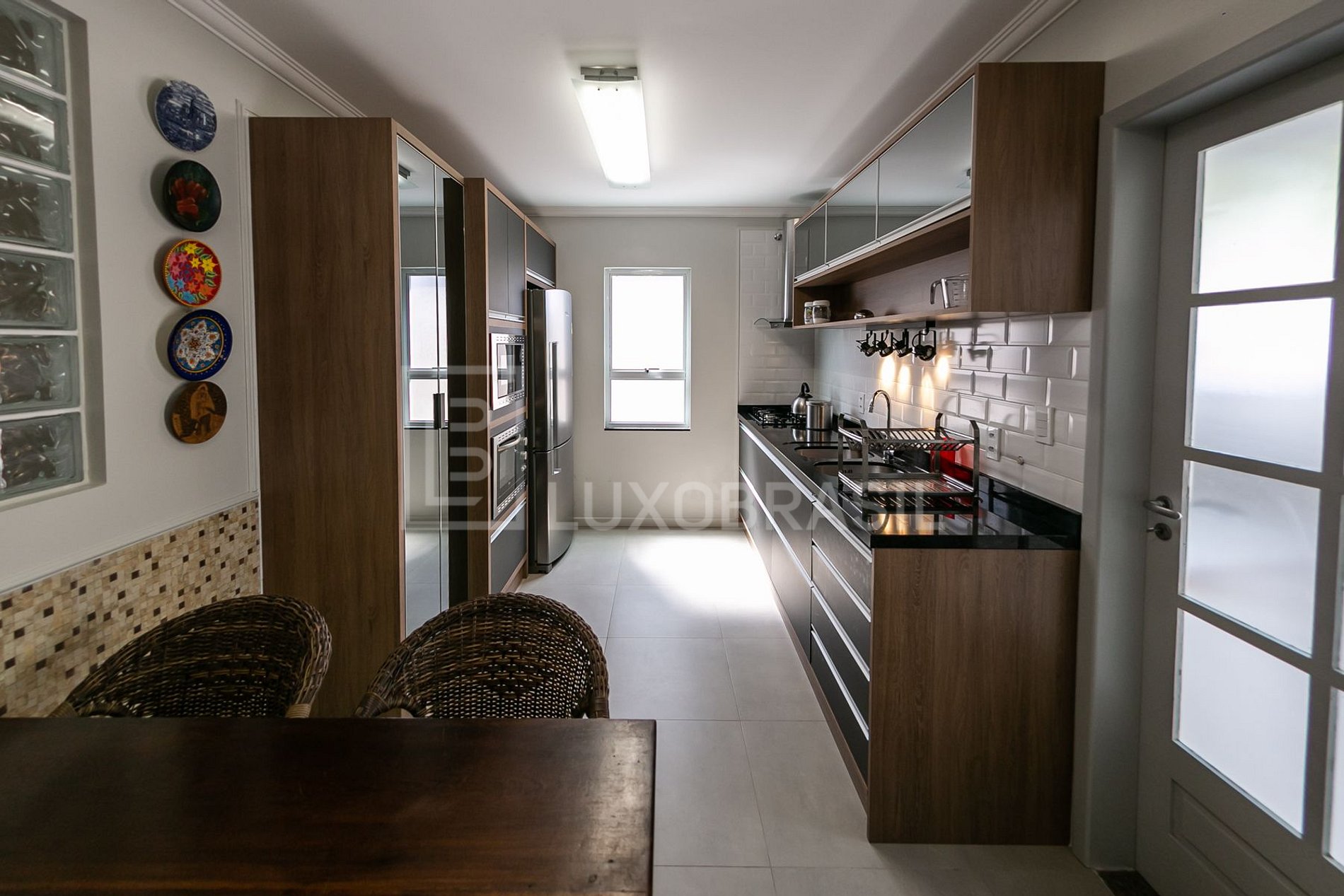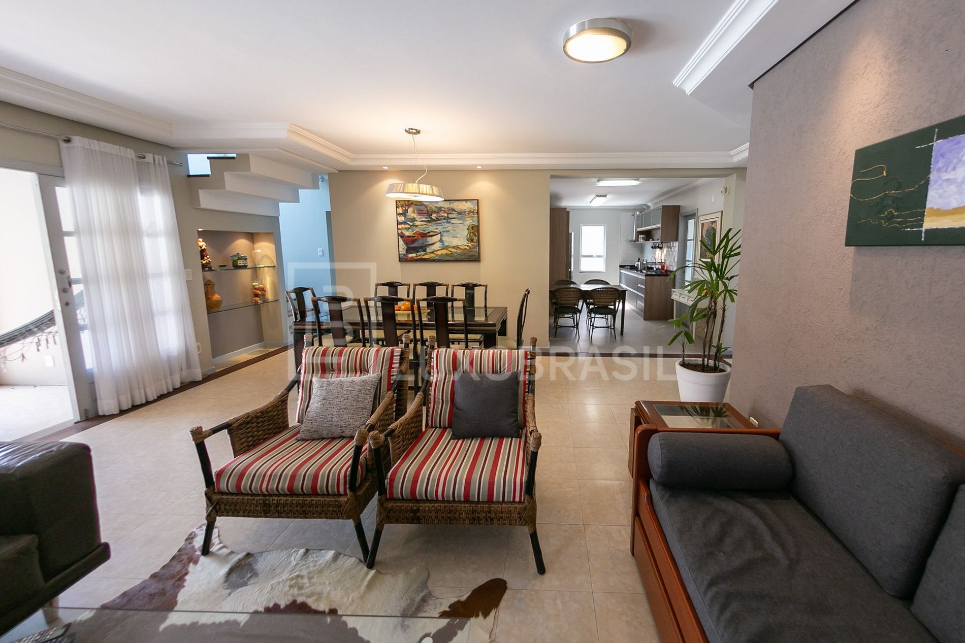 Living room and dining room integrated with a super modern, complete and tasteful kitchen.