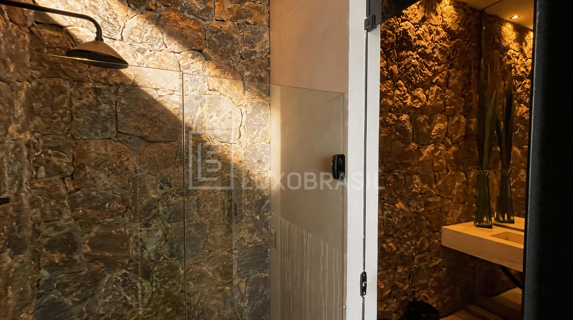 LUXOBRASIL rents a luxurious mansion located in the prestigious Joá neighborhood, situated between the elegant South Zone and the modern Barra da Tijuca. With a panoramic ocean view, the property offers a total of 5 suites, two of which face the sea and feature modern, elegant bathrooms.