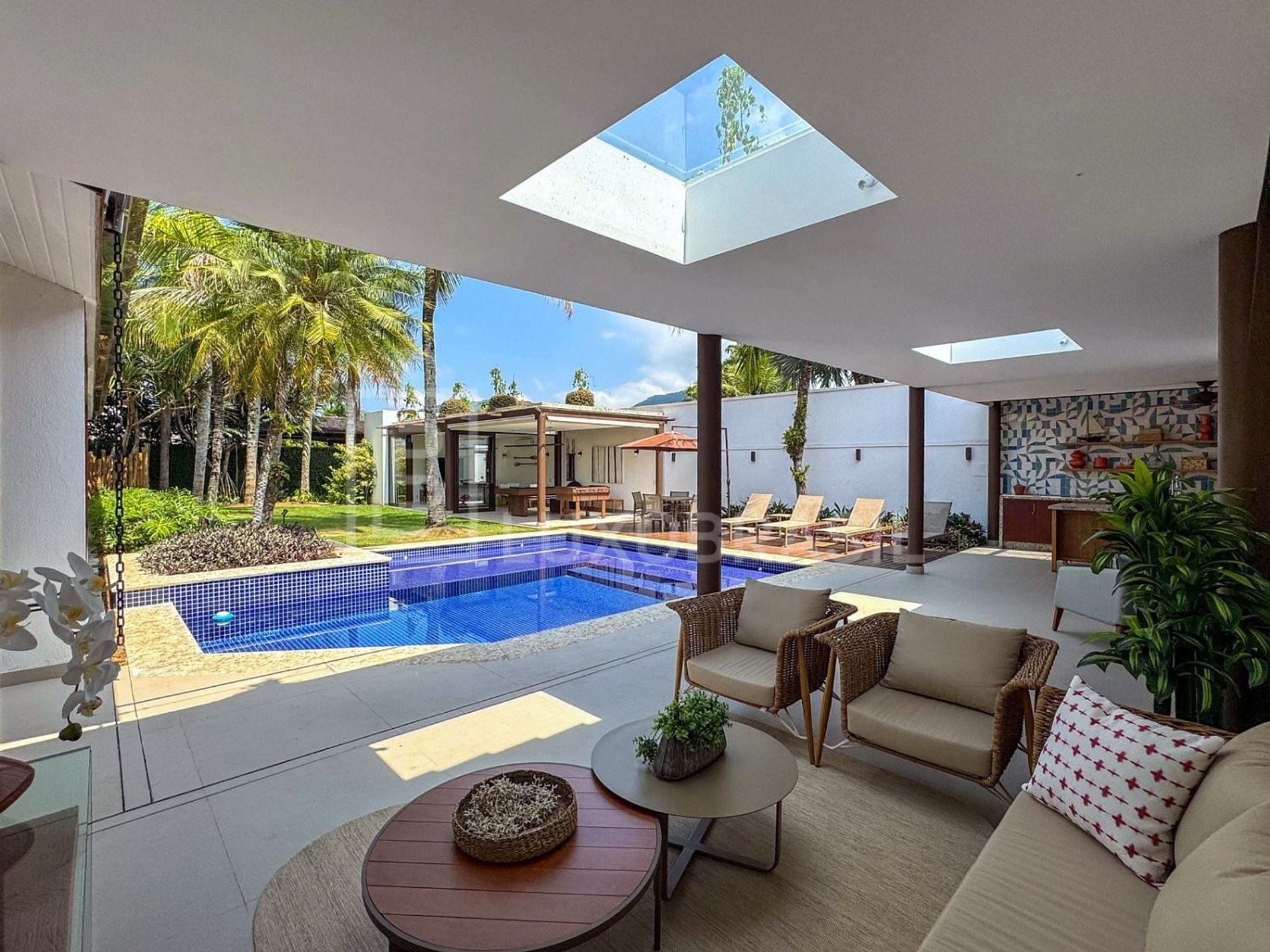Stay in a high-end mansion in Guarujá, perfect for those who value comfort, sophistication, and plenty of space. Located in one of the most exclusive areas of the São Paulo coastline, this modern and fully equipped home offers a unique experience of leisure, relaxation, and convenience. With air-conditioned rooms, elegant decor, and complete amenities, it's ideal for families or groups seeking unforgettable moments.