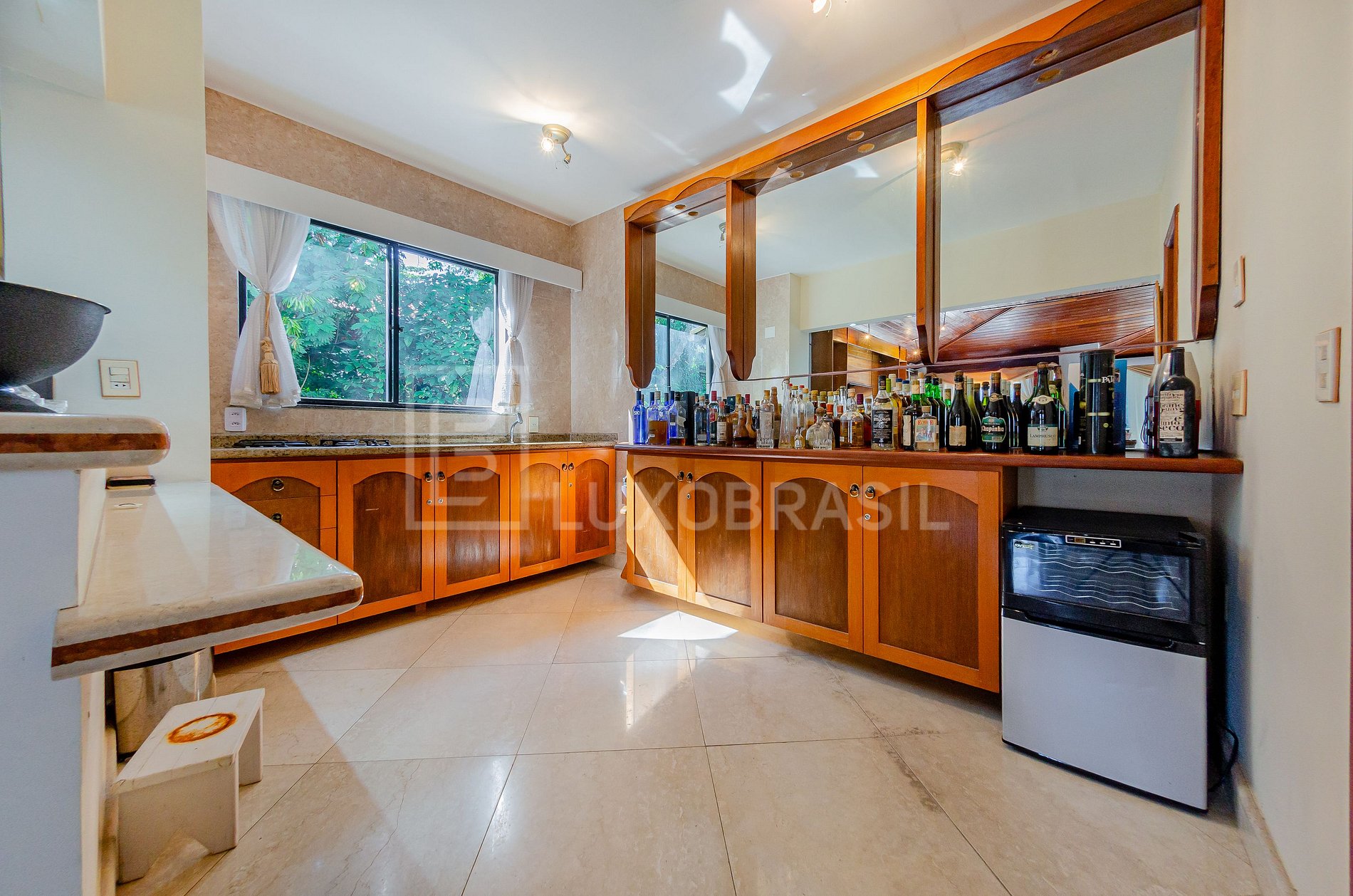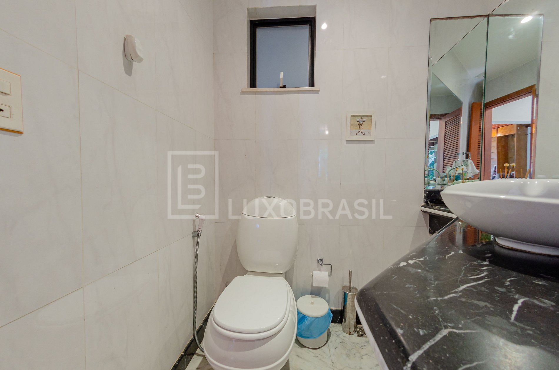 It consists of 04 suites with TV and air conditioning, a home-office, an air-conditioned living and dining room, a bar, a toilet and a fully-equipped kitchen. In the pool area, there is a gourmet area with barbecue and wood oven, 01 bathroom, hydro, sauna and gym.