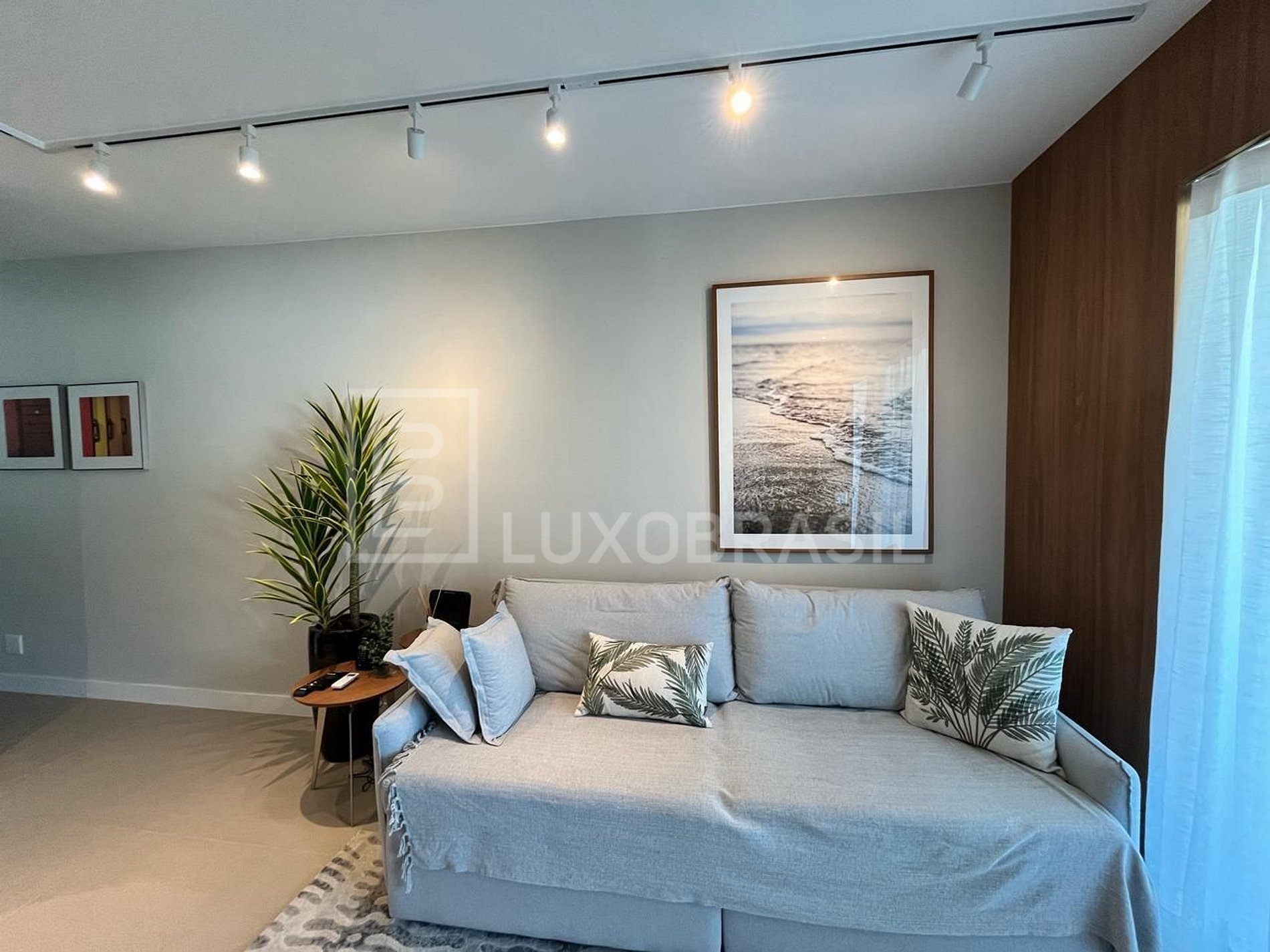 Situado no Condomínio Barra Beach, oferece infraestrutura completa com portaria e segurança 24h, piscina, sauna, salão de jogos, mercadinhos, duas lavanderias e serviço diário de arrumação.