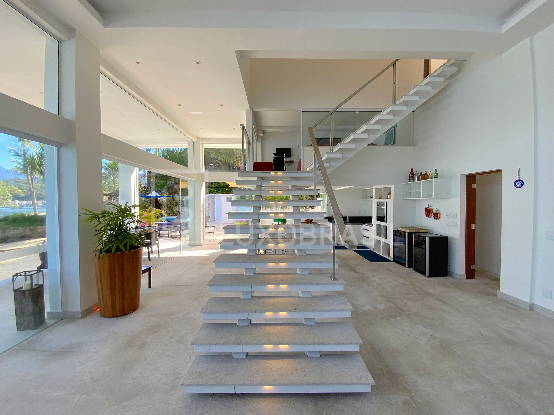Mansion in Angra dos Reis, Costa Verde of Rio de Janeiro, in the Caieirinha Condominium. Built in 2018 and with a privileged view, the house is right on the beach. There are 09 suites, with fine finishing, LED lighting, porcelain floor, lots of natural light, high ceilings, private gym, all in a closed condominium, with 24-hour security, accommodating up to 22 guests.