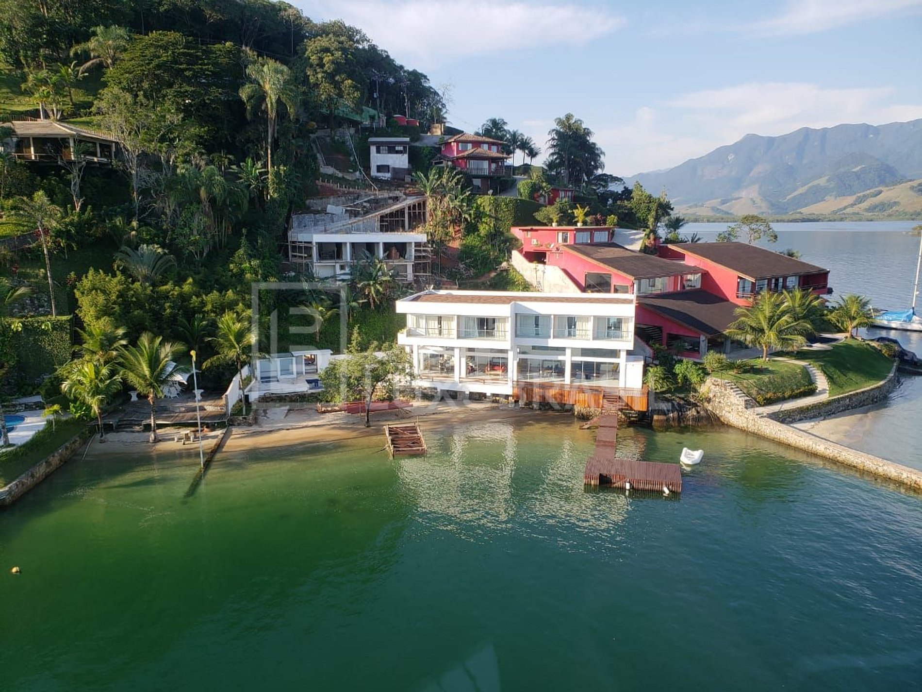 Entre as comodidades, destacam-se a piscina, sauna, hidromassagem, praia particular, deck, cais e poita para embarcações de até 100 pés. A casa também conta com lavanderia, gerador e uma dependência completa de funcionários.