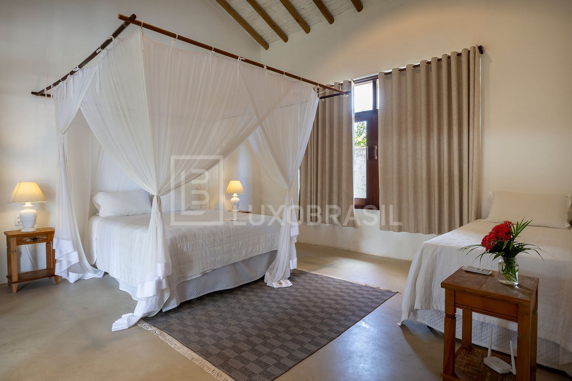 The house blends sophistication with rustic woodwork for a special touch. It has 06 suites, all with air conditioning and box beds. The living room has high ceilings and is fully integrated with the veranda and dining room, which has a beautiful wooden table for 10 people and a gourmet kitchen with an island to help with meals. Next to the living room is an air-conditioned TV room.