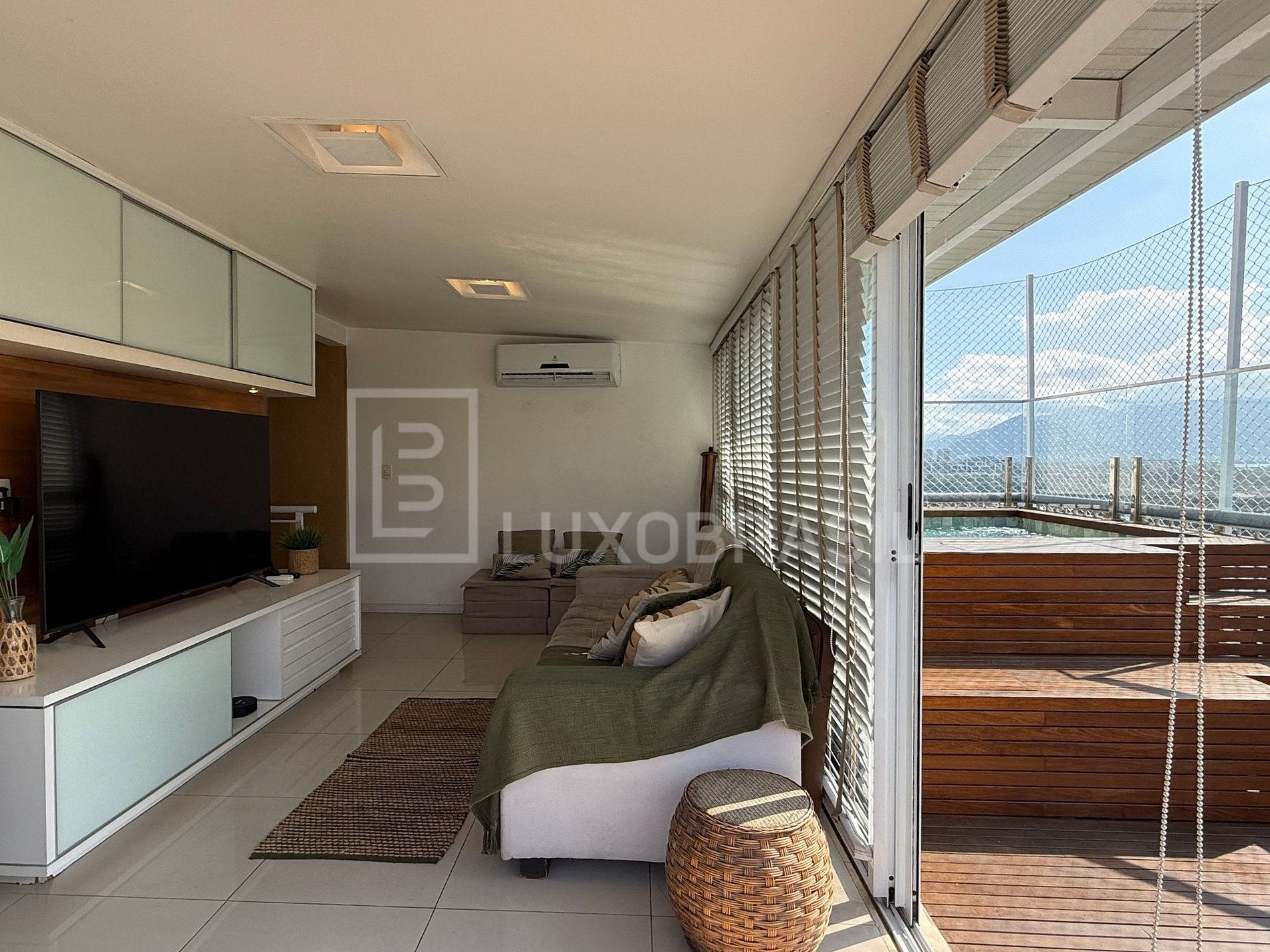 Rented fully furnished and equipped: air conditioning in every room, 3 TVs, Wi‑Fi, safety nets throughout the penthouse, and one parking space.