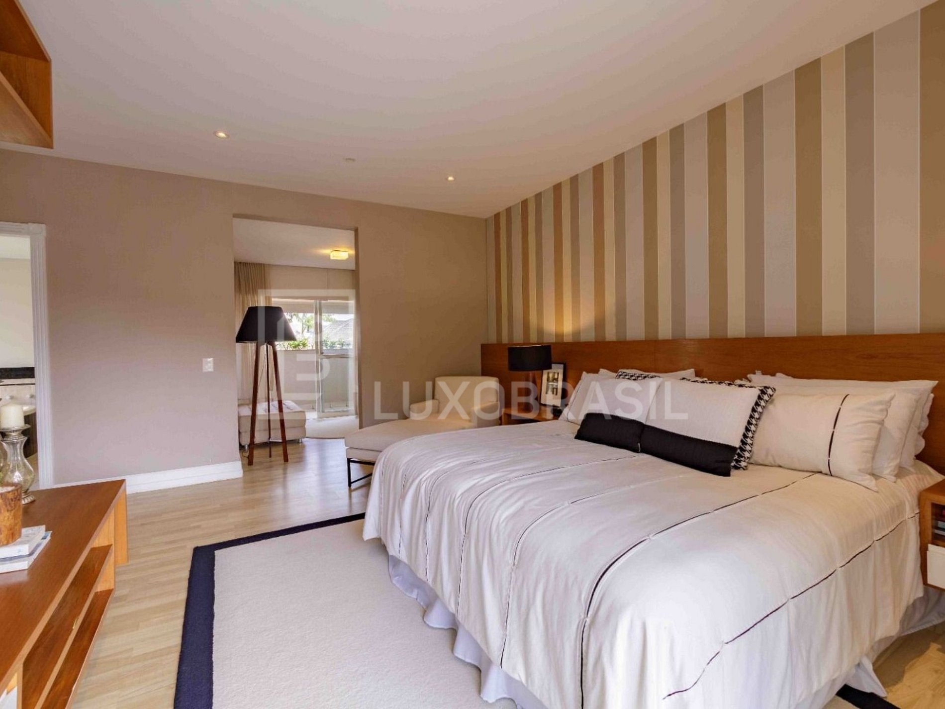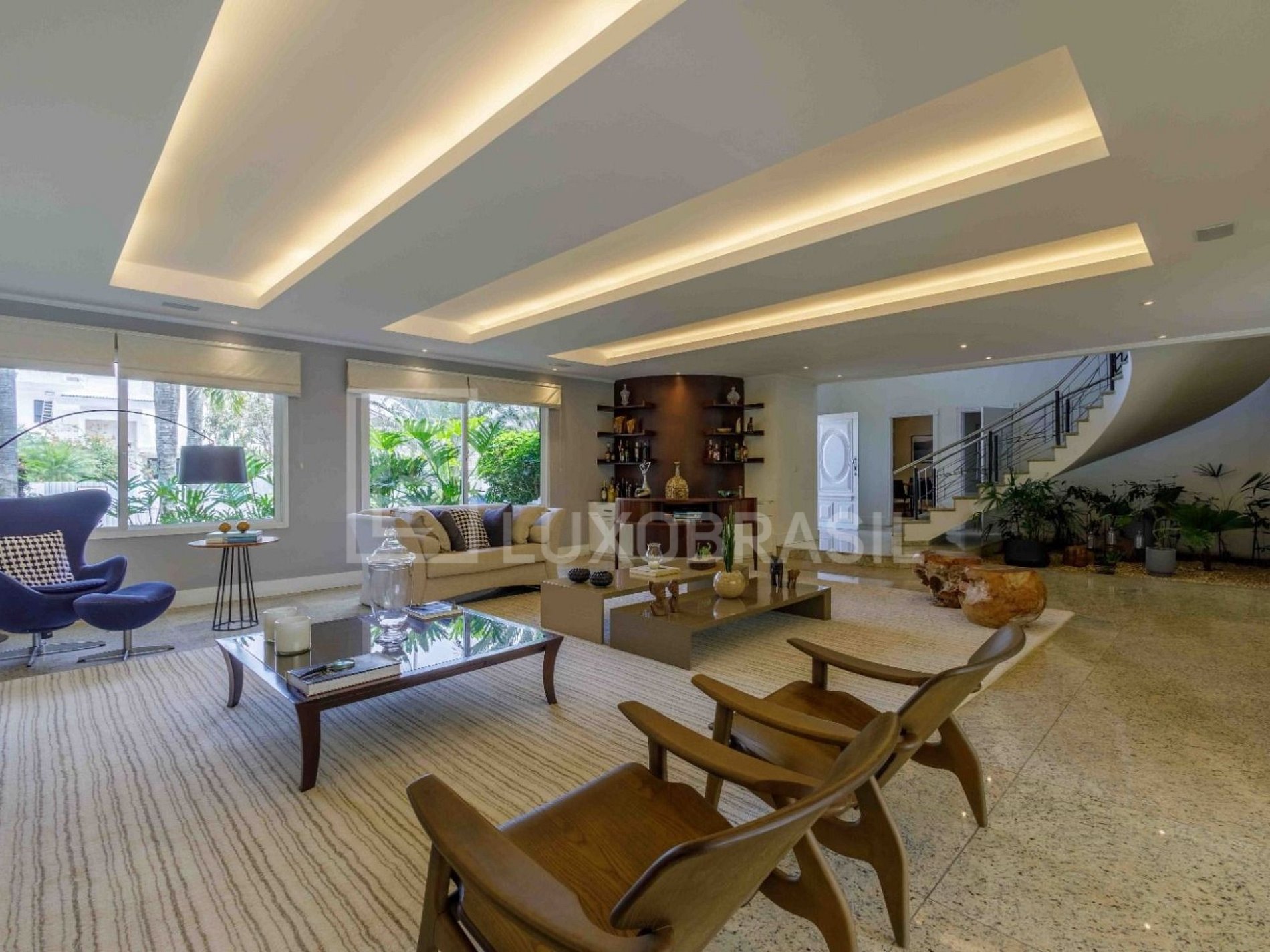 LUXO BRASIL vende magnífica mansão triplex, meticulosamente reformada e concebida pelo renomado arquiteto Brezinski, situada no prestigiado condomínio Malibu. Com uma área construída de 850m², esta propriedade exala elegância e conforto.