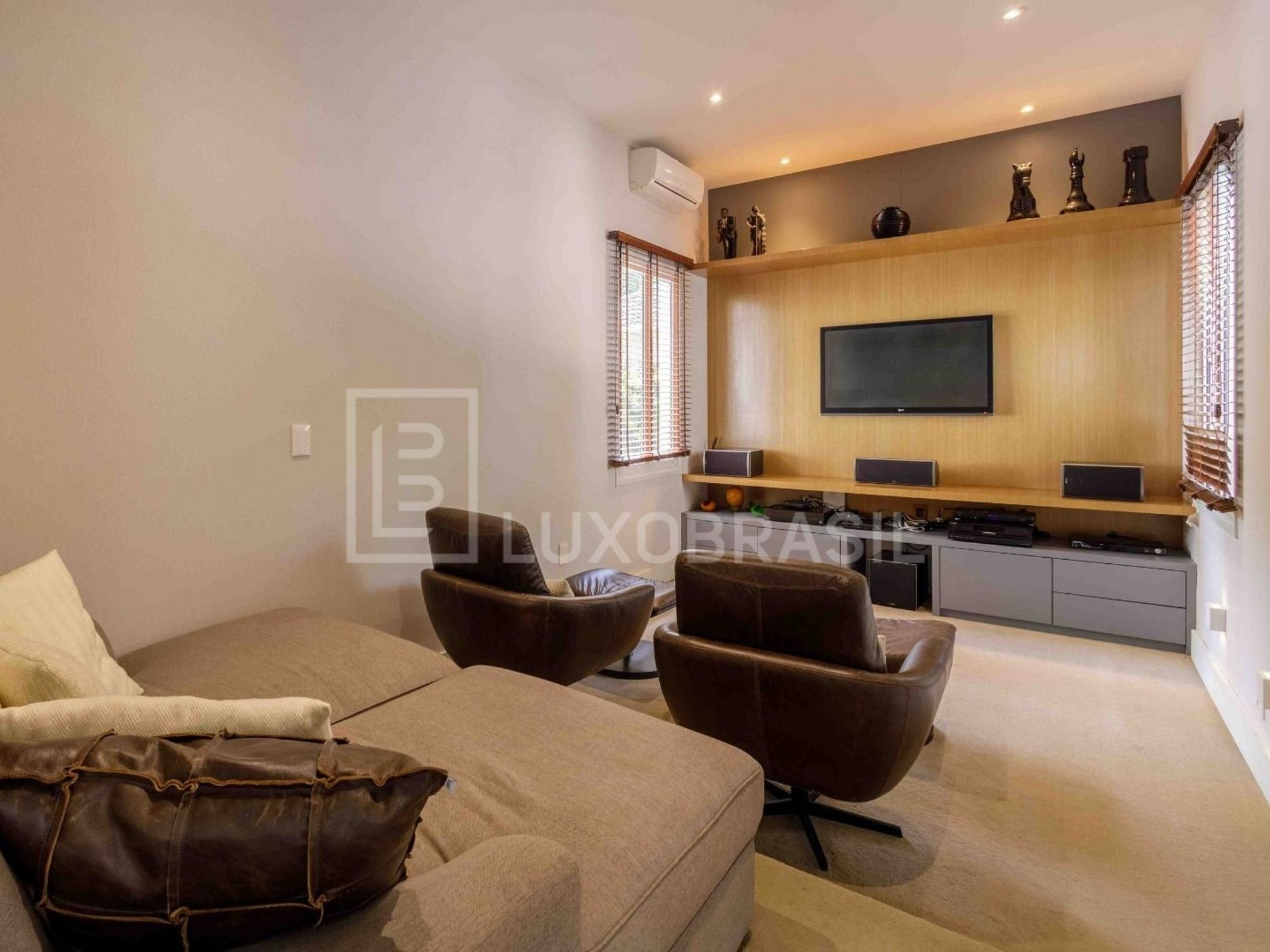 LUXO BRASIL vende magnífica mansão triplex, meticulosamente reformada e concebida pelo renomado arquiteto Brezinski, situada no prestigiado condomínio Malibu. Com uma área construída de 850m², esta propriedade exala elegância e conforto.