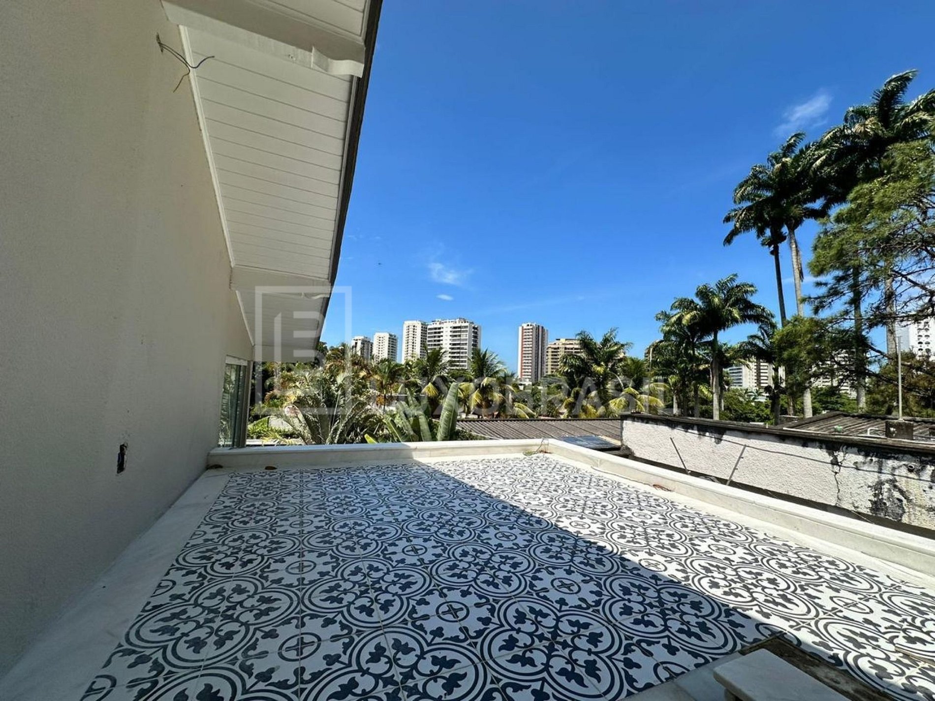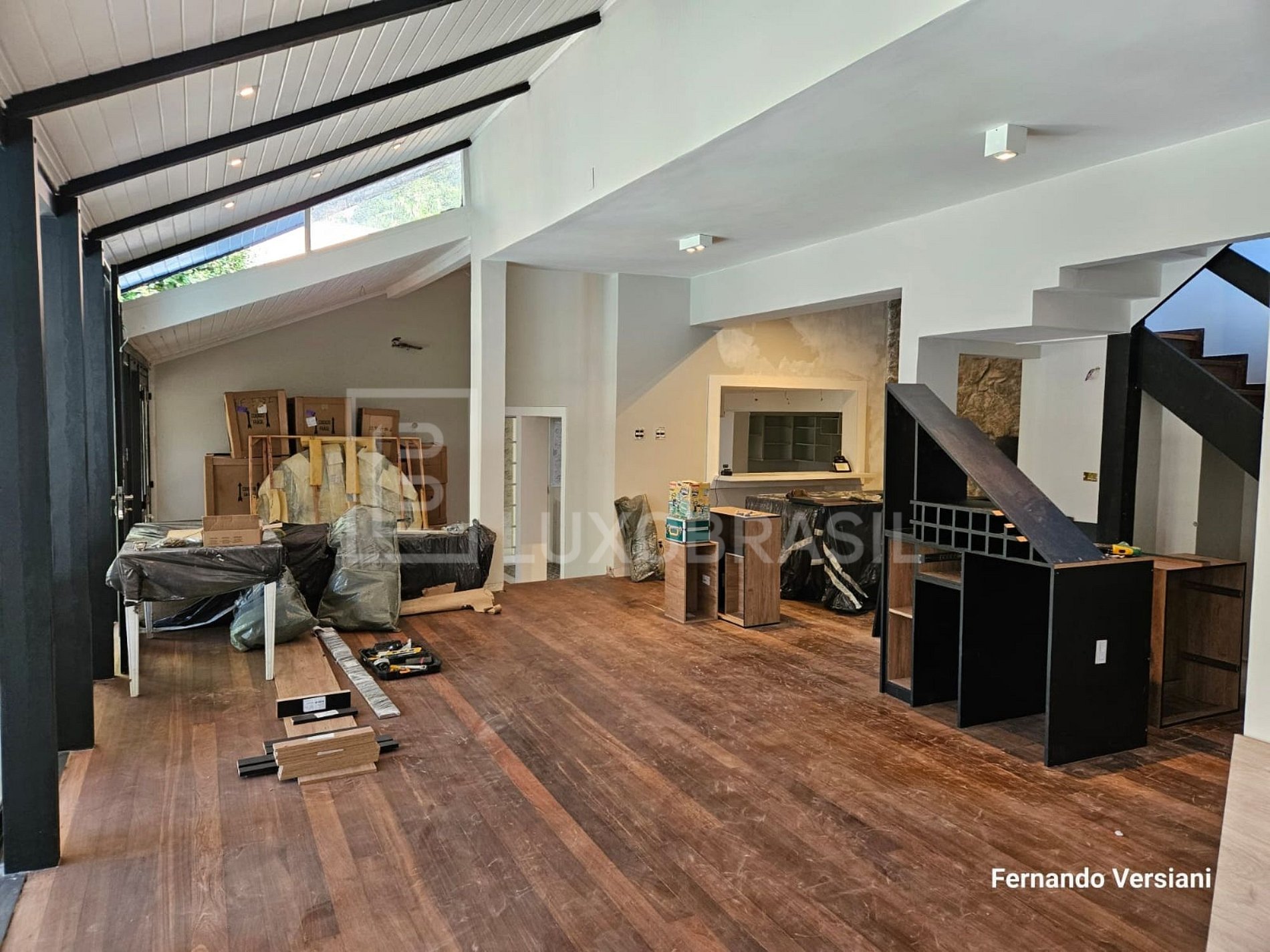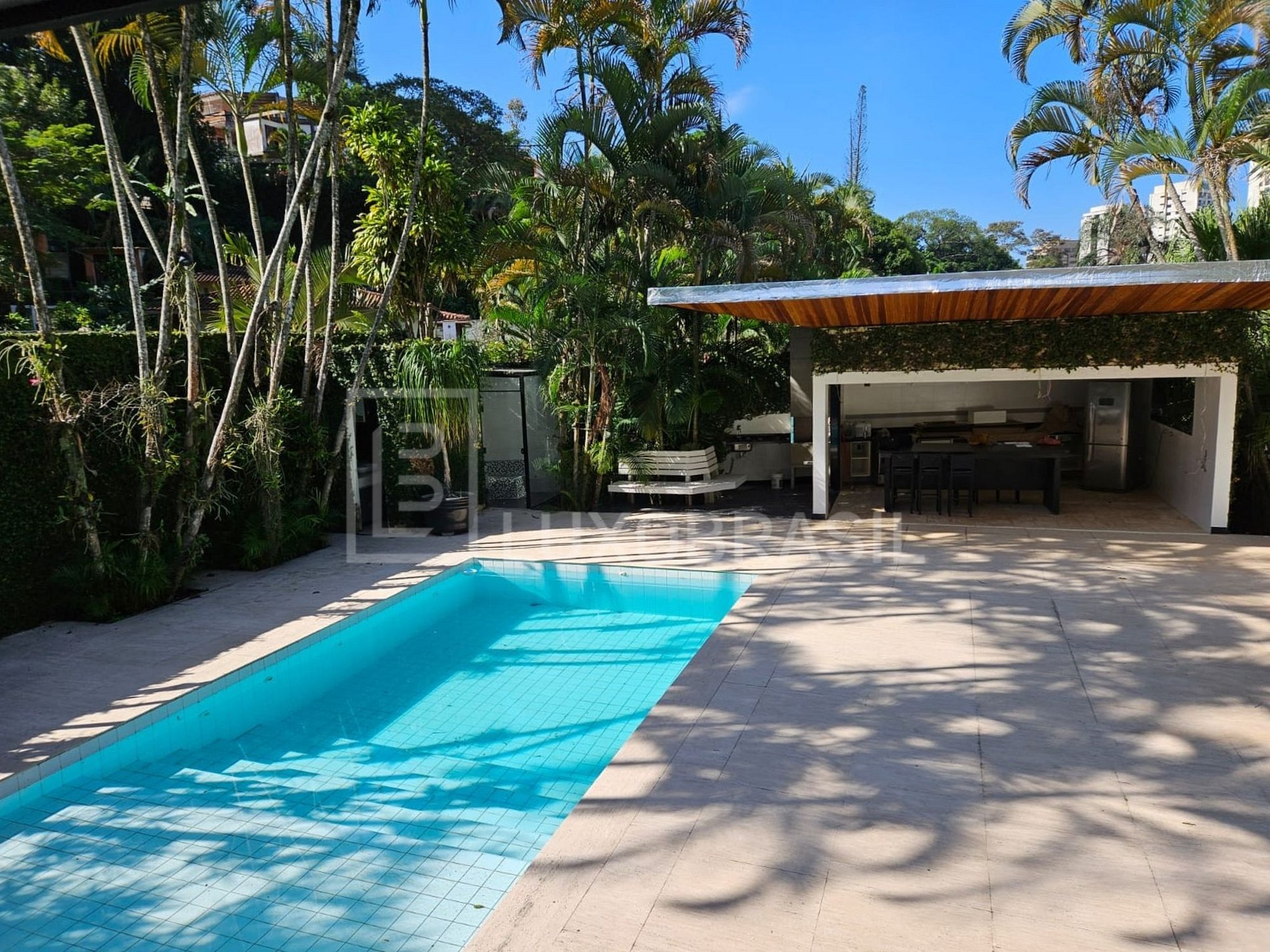 With 500 m² of built area and 970 m² of land, the property features generous spaces distributed across 4 living rooms and 3 large suites — the master with a walk-in closet and access to a spacious outdoor deck. There is also an office that can be converted into an additional bedroom.