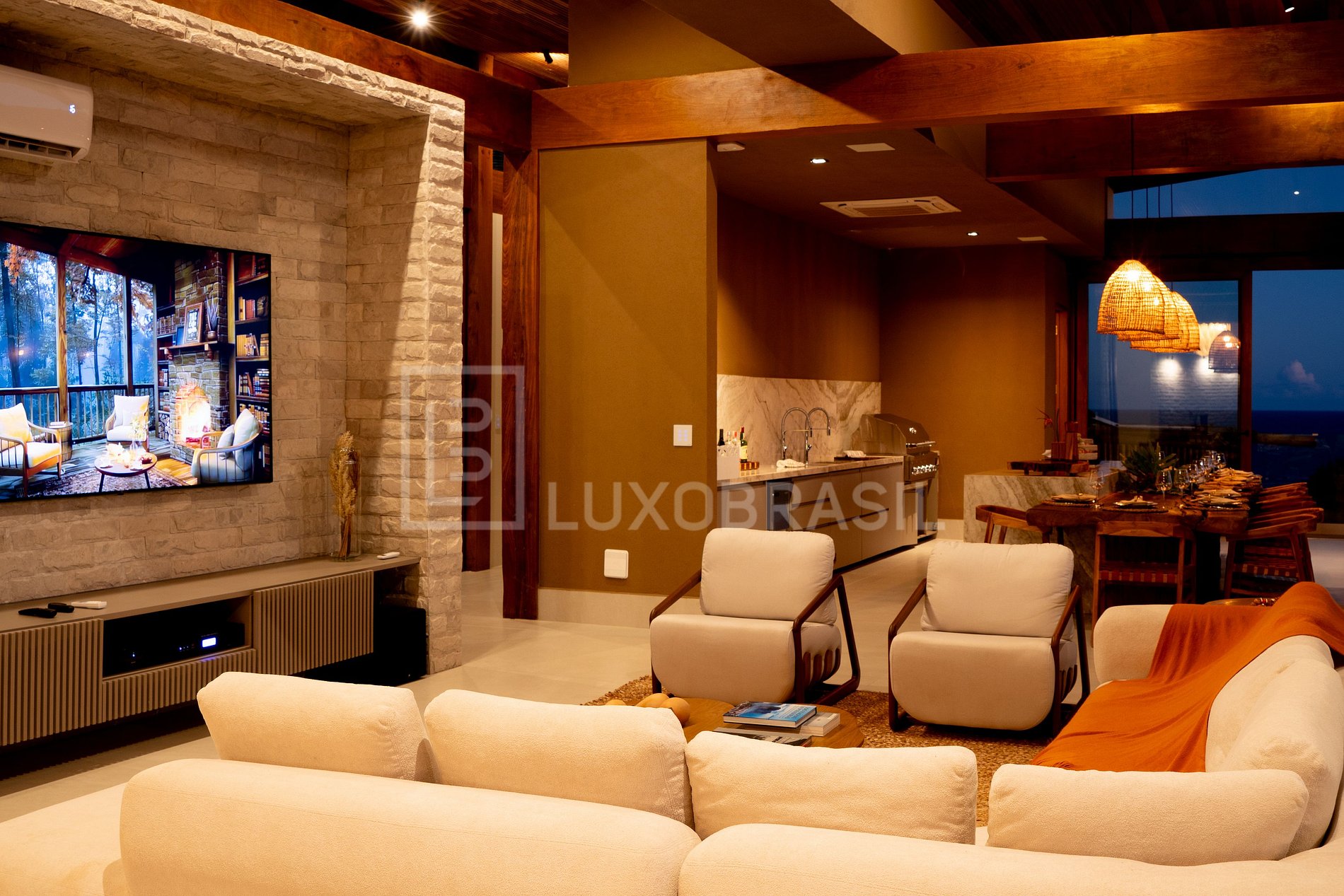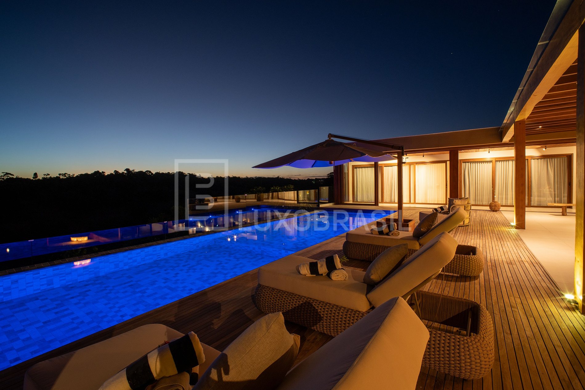With over 2,700 m² of land and 1,580 m² of built area, the property was designed to provide comfort and full immersion in the landscape. There are 9 spacious suites, all with views of the sea or the preserved forest, creating a unique atmosphere of exclusivity and coziness. The 80 m² infinity pool seems to merge with the horizon, giving the sensation of complete harmony with the ocean.